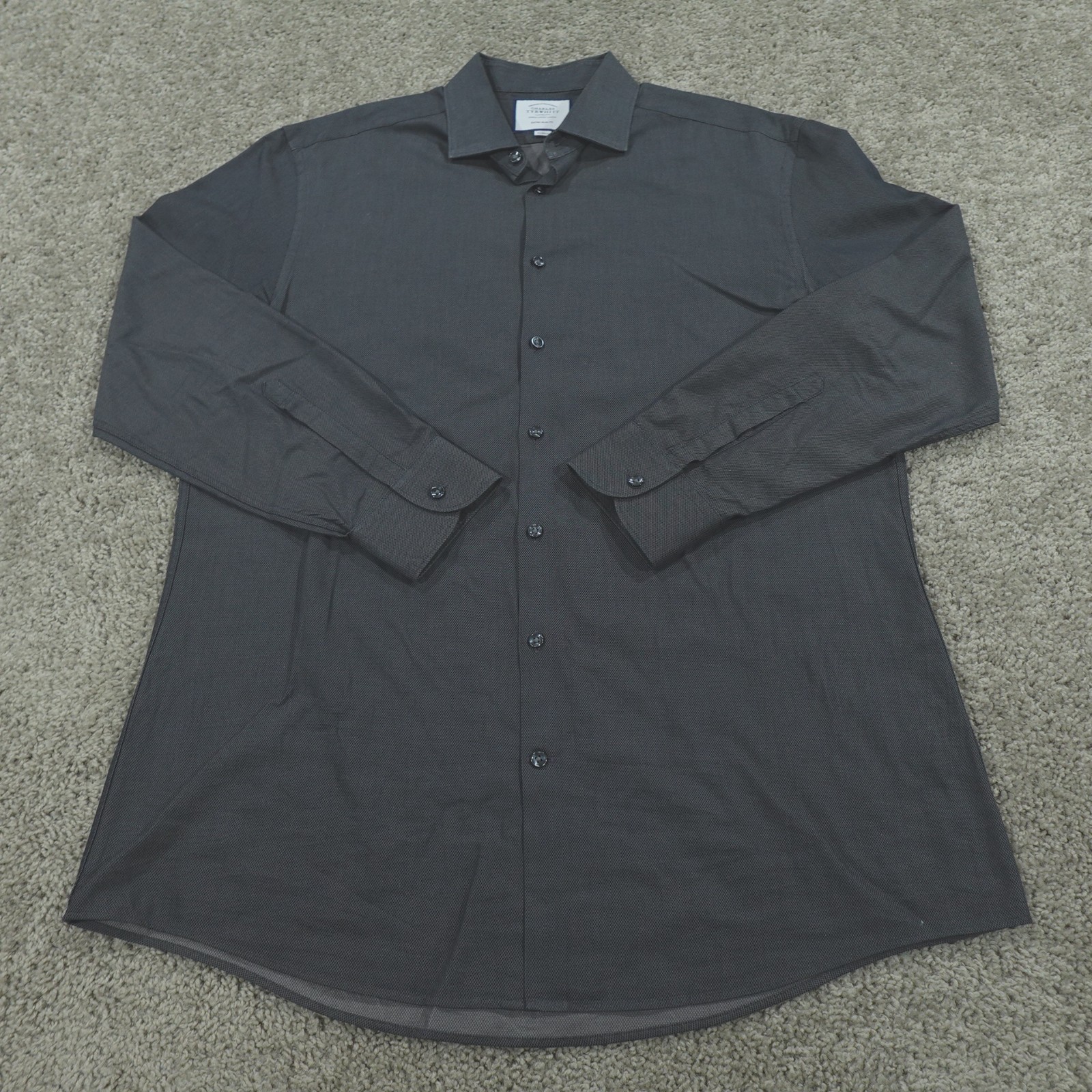 как выглядит Charles Tyrwhitt Dress Shirt Mens 17 35 Extra Slim Fit Button Up Charcoal Gray фото