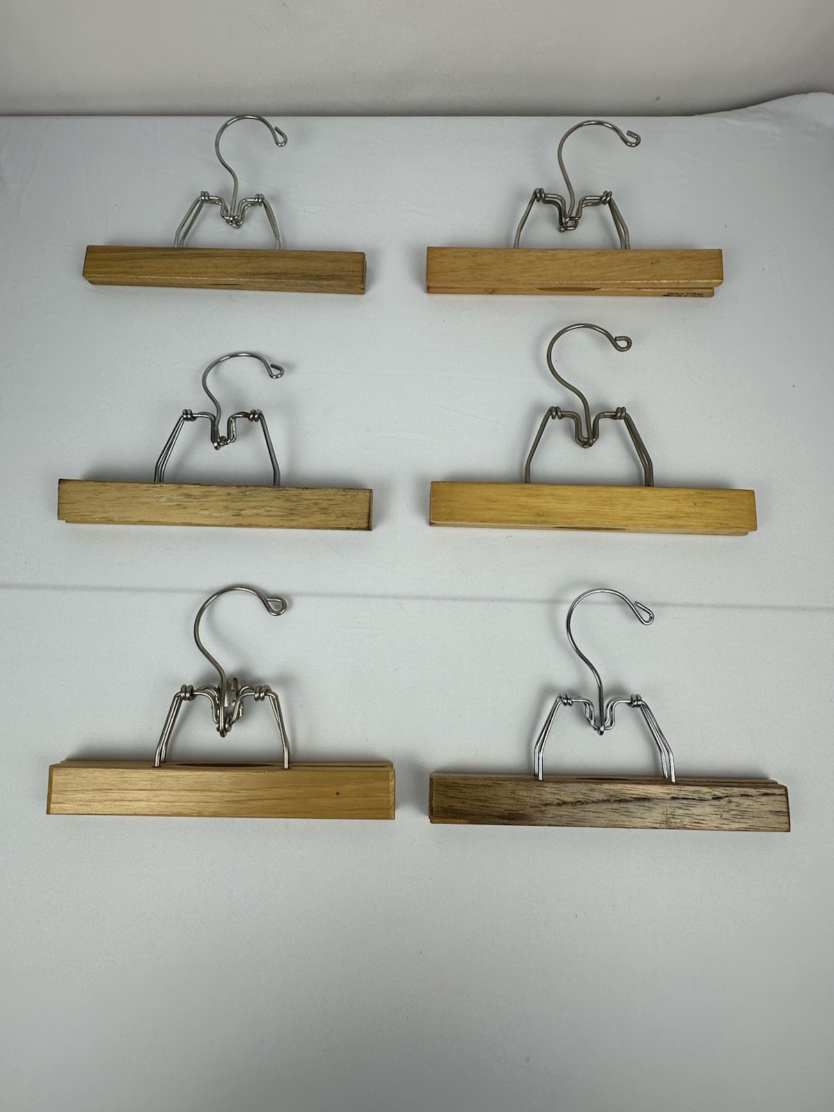 6 Pc Set Vintage Antique Wooden Metal Pants Skirt Hangers Clamp Clip 9 16