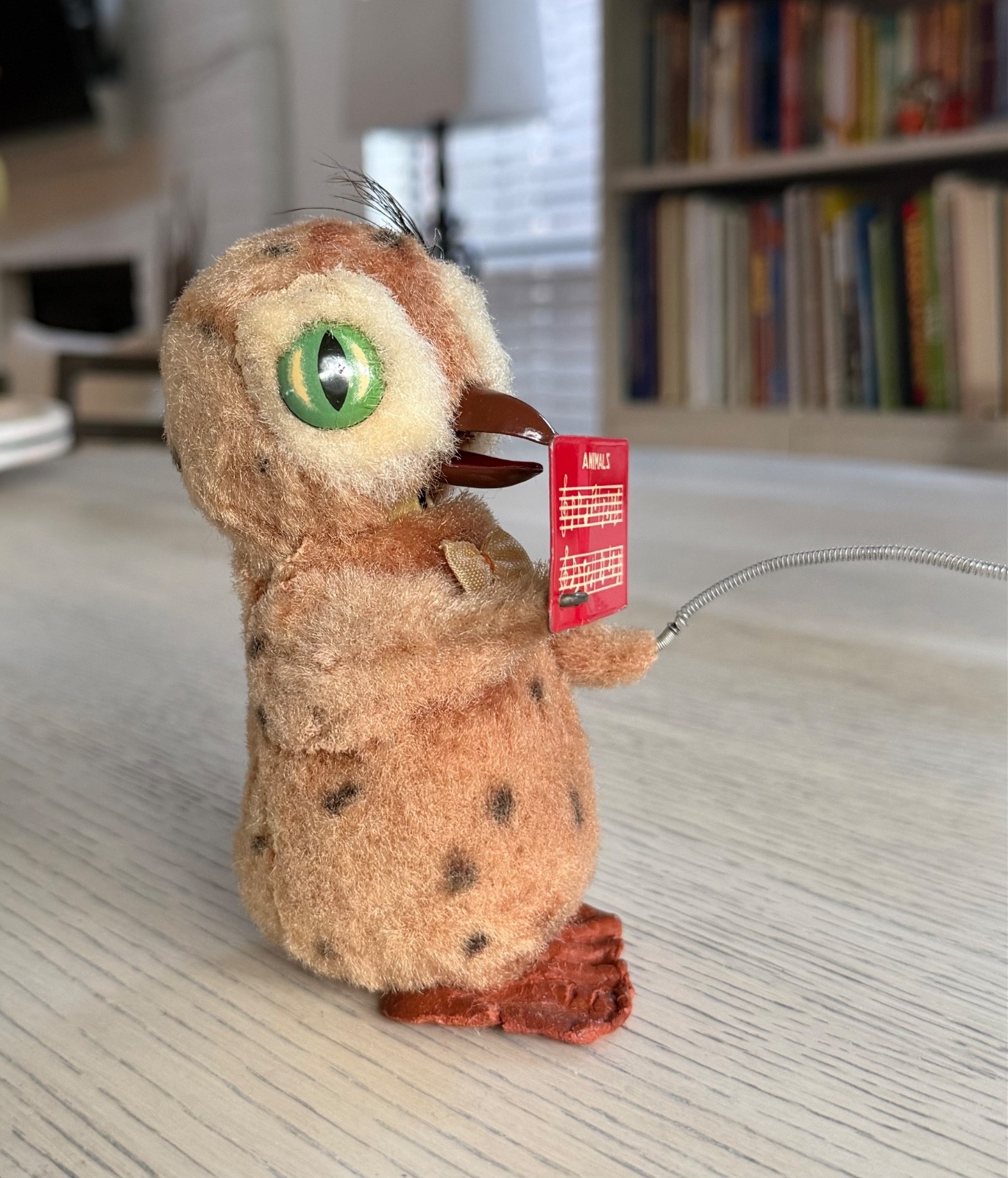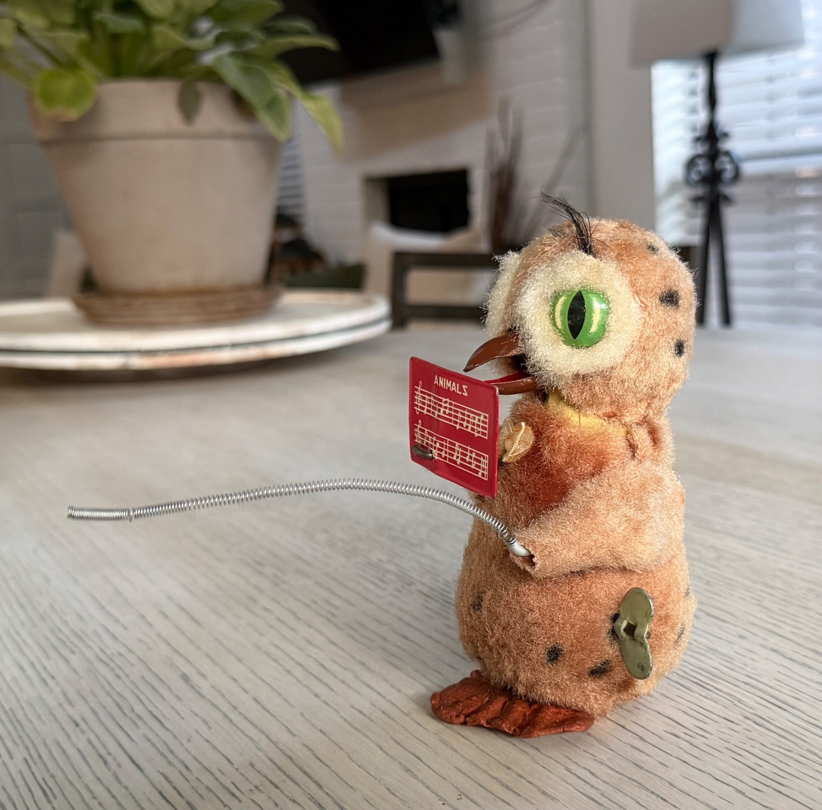 Vintage TN Toys Nomura Japan Clockwork Wind Up Musician the Owl 1950s WORKS