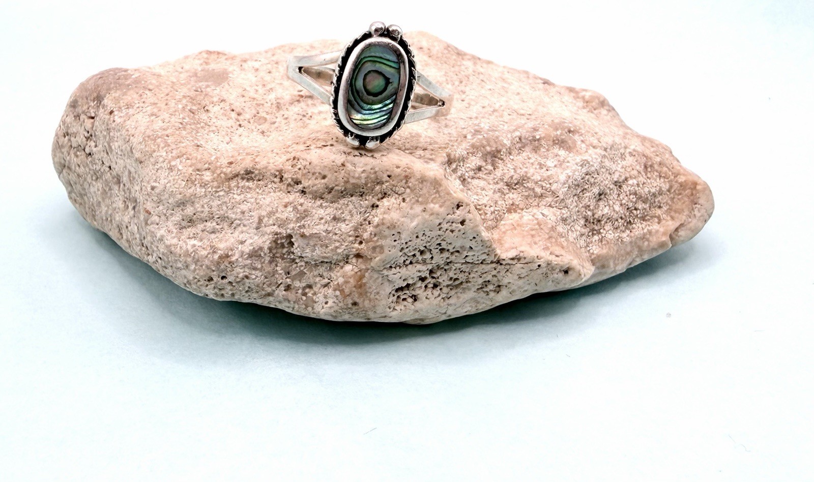 Vintage Sterling Silver 925 Oval Elongated Abalone Ring Size 6.5