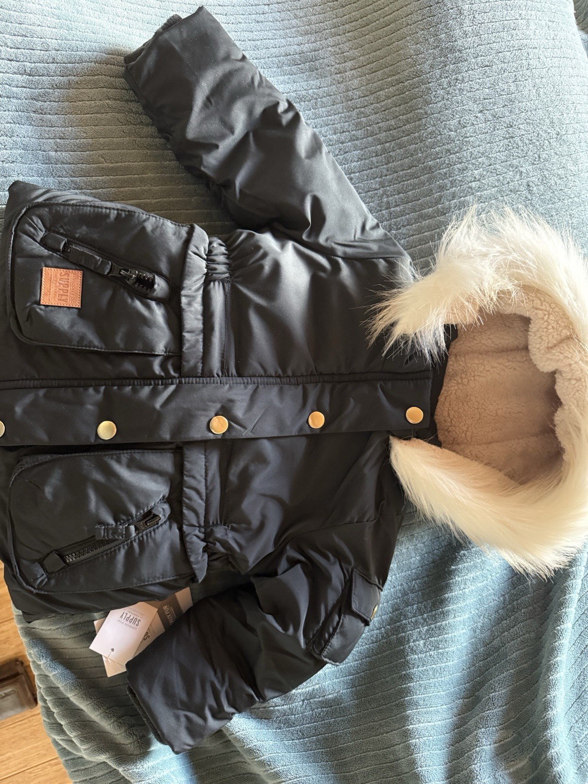 как выглядит LONDON FOG Toddler Girls Heavyweight Faux Fur Trim Jacket,Black,Size 18 Months фото