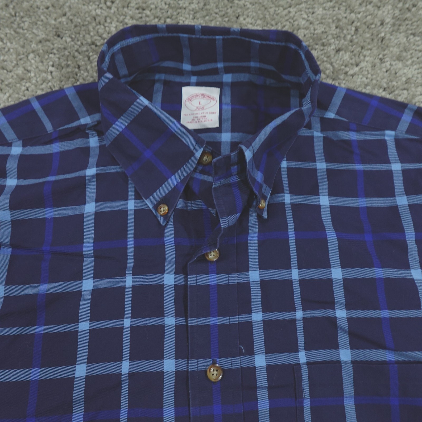 как выглядит Brooks Brothers Dress Shirt Mens Large Button Down Regular Fit Window Pane Check фото