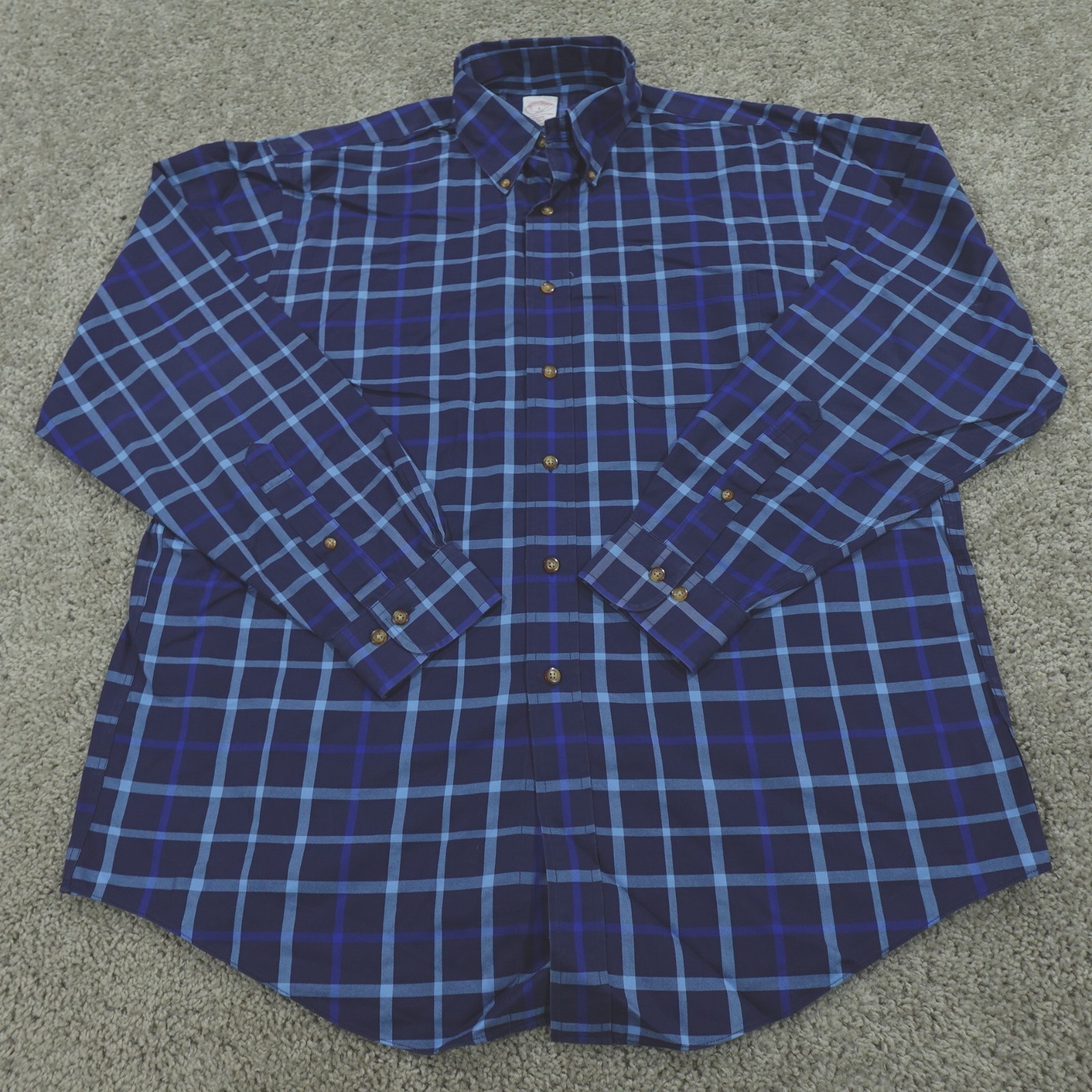 Brooks Brothers Dress Shirt Mens Large Button Down Regular Fit Window Pane Check