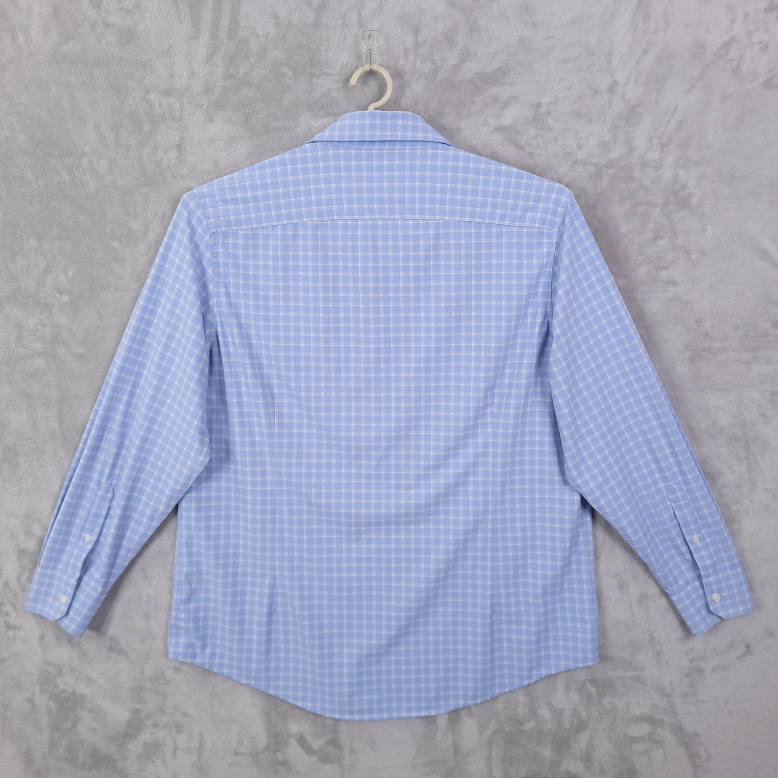 как выглядит Mizzen Main Dress Shirt Mens XL Blue Check Classic Fit Stretch Long Sleeve фото