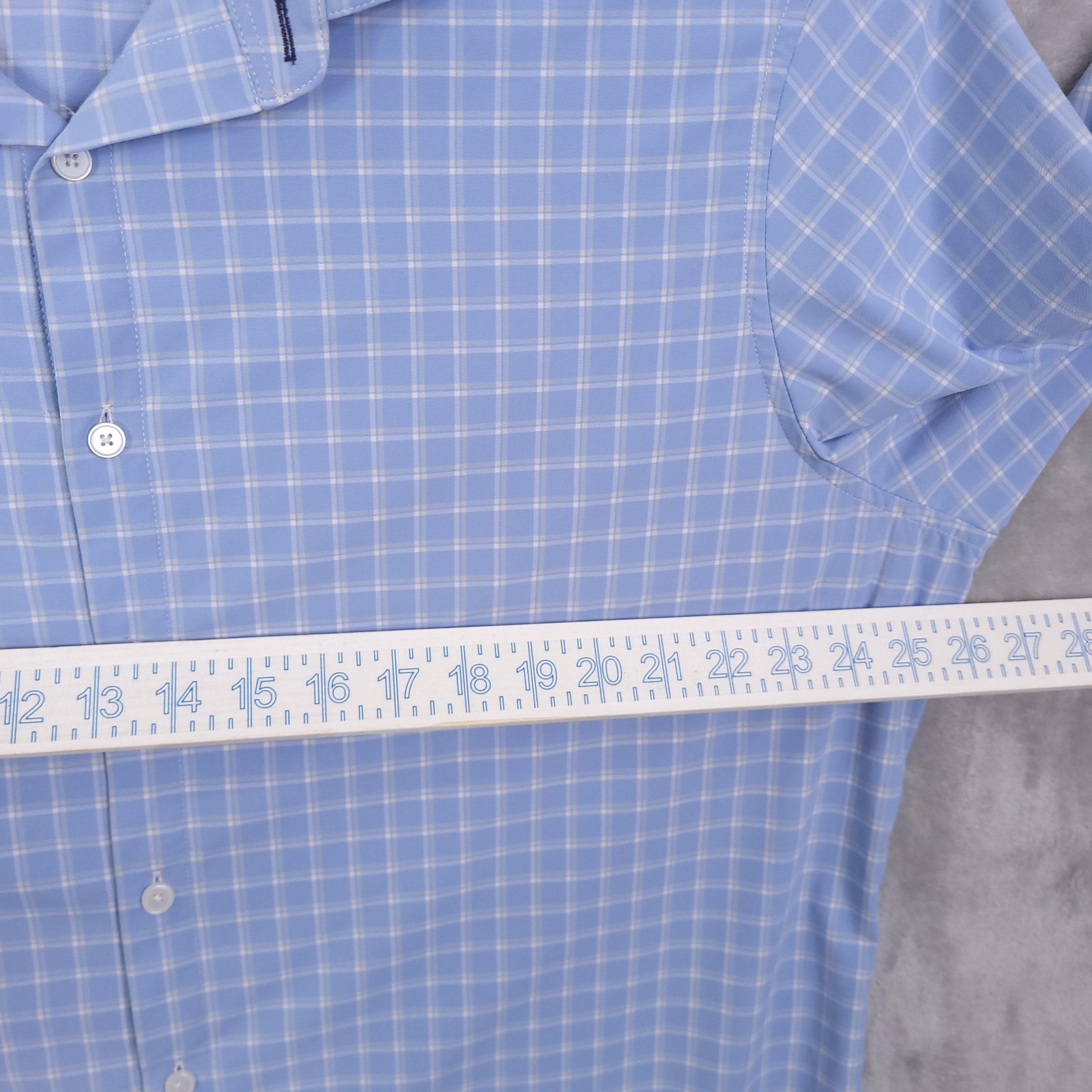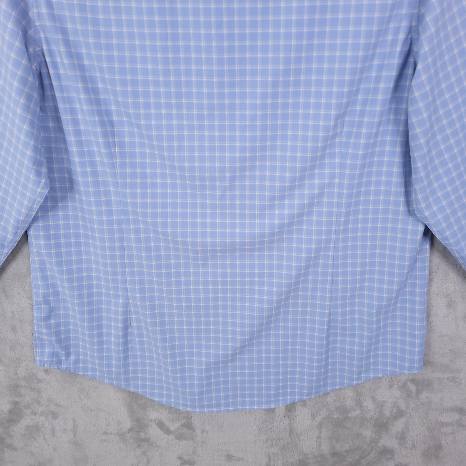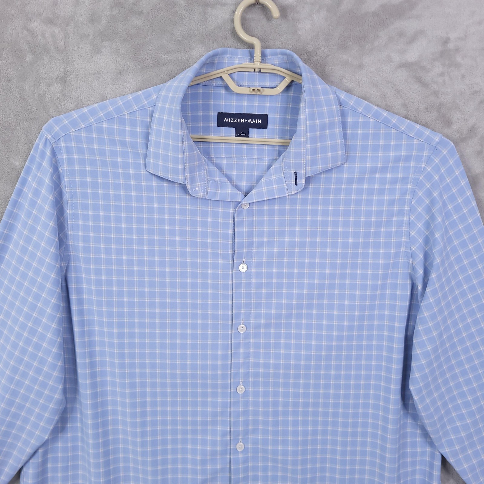 Mizzen Main Dress Shirt Mens XL Blue Check Classic Fit Stretch Long Sleeve
