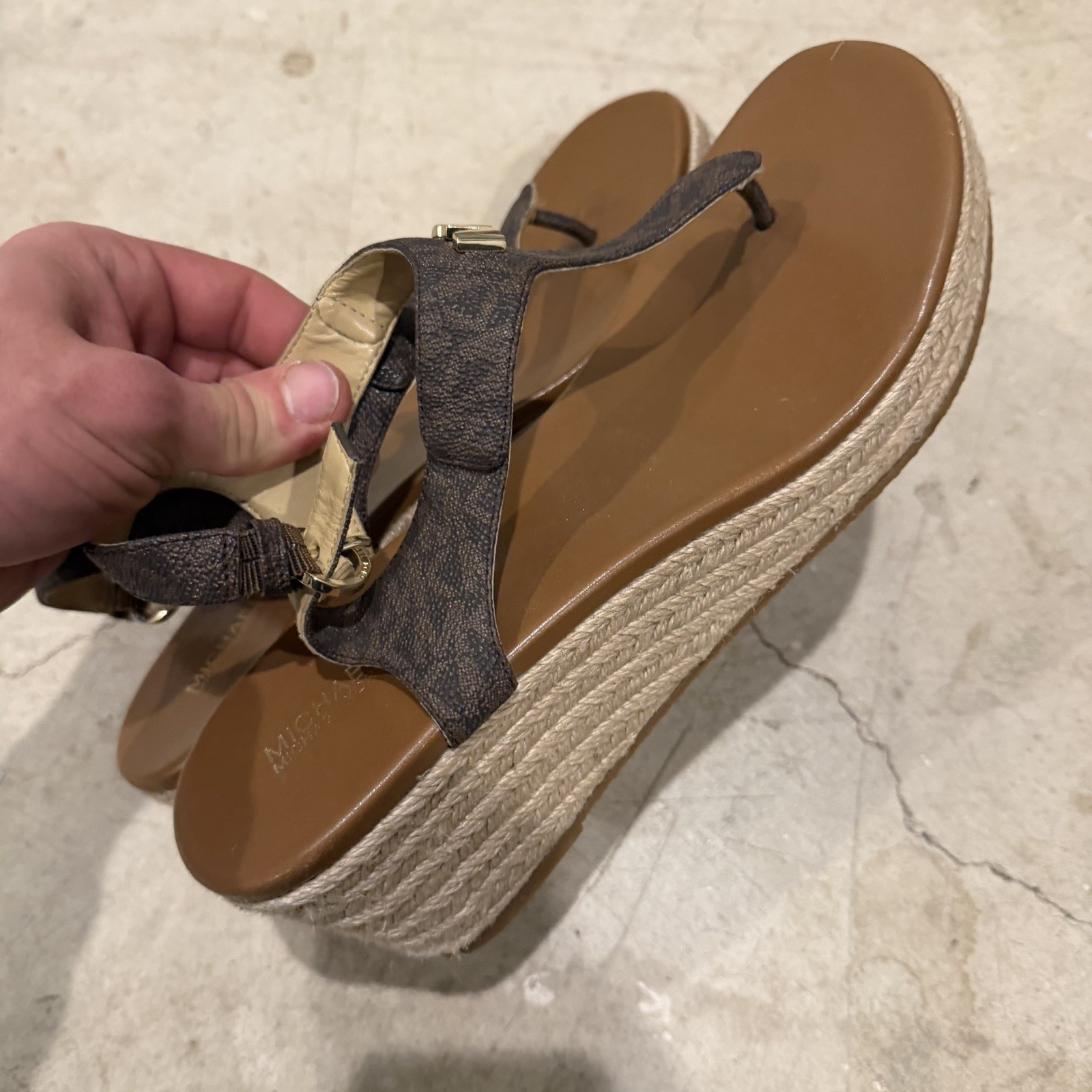 как выглядит MICHAEL KORS Laney Logo Espadrille Wedge Sandal Size 10 M фото