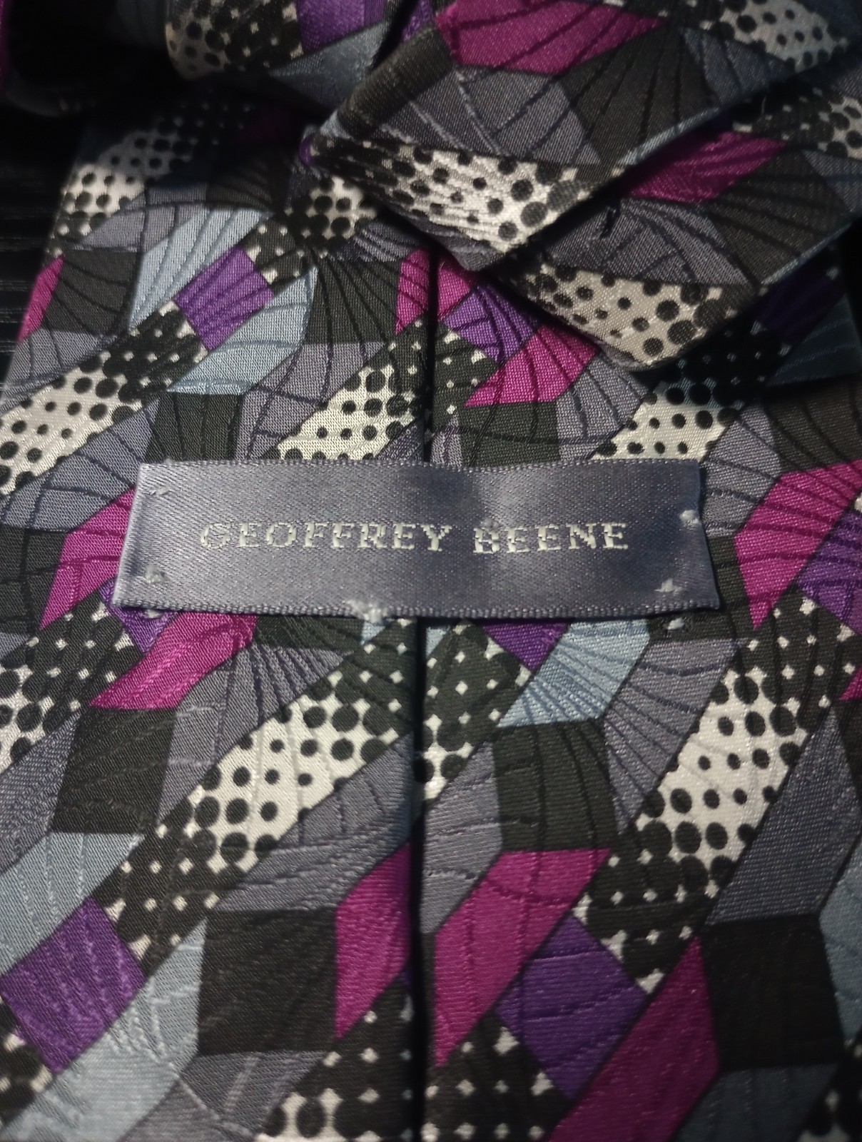 Geoffrey Beene Silk Tie Hand Made Italy Geometric Abstract Purple Gray Black...