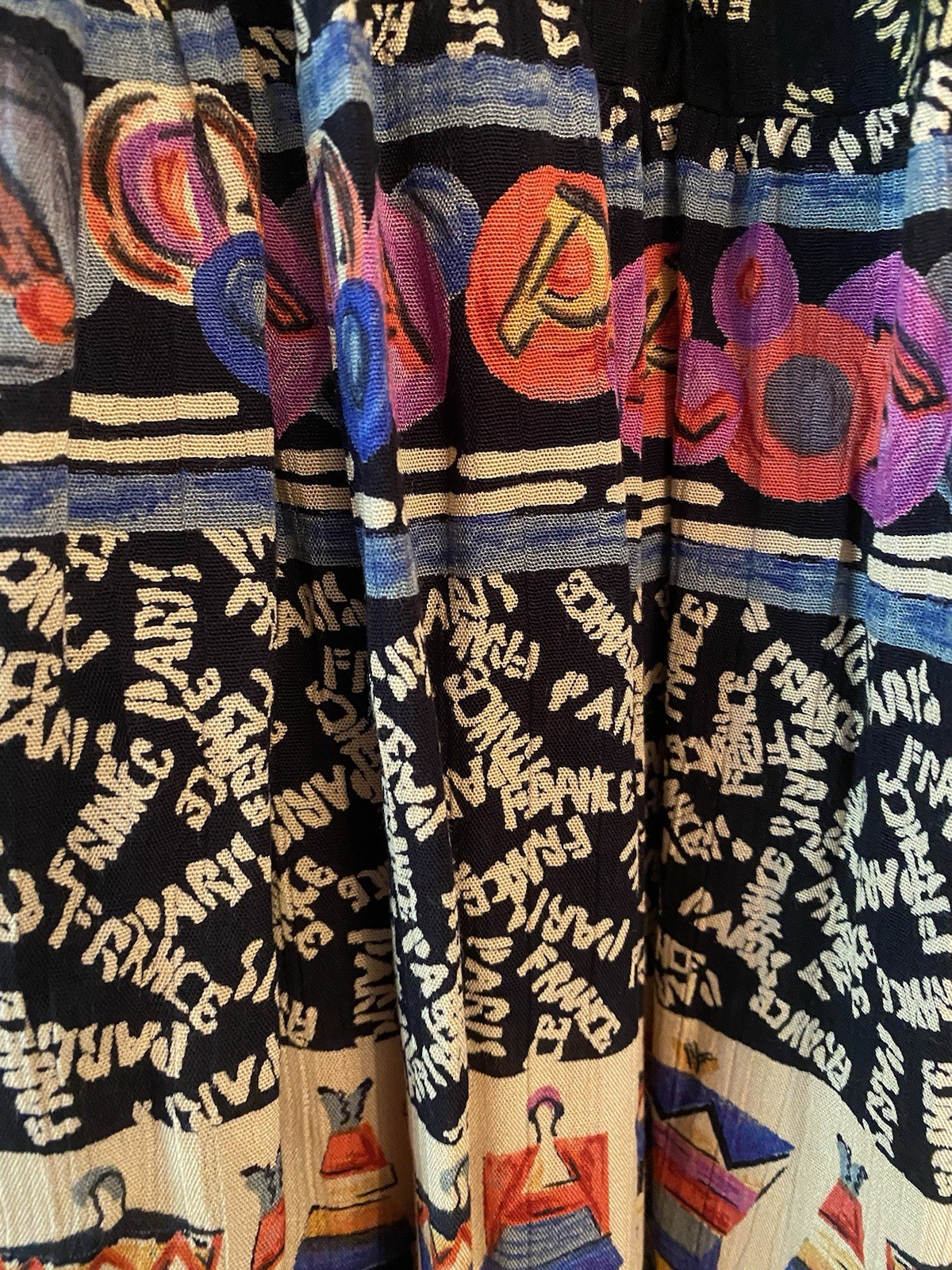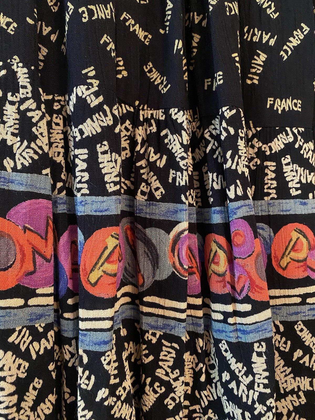 как выглядит Vintage Carole Little Size 8 Rayon Paris Novelty Maxi Skirt USA MADE 90