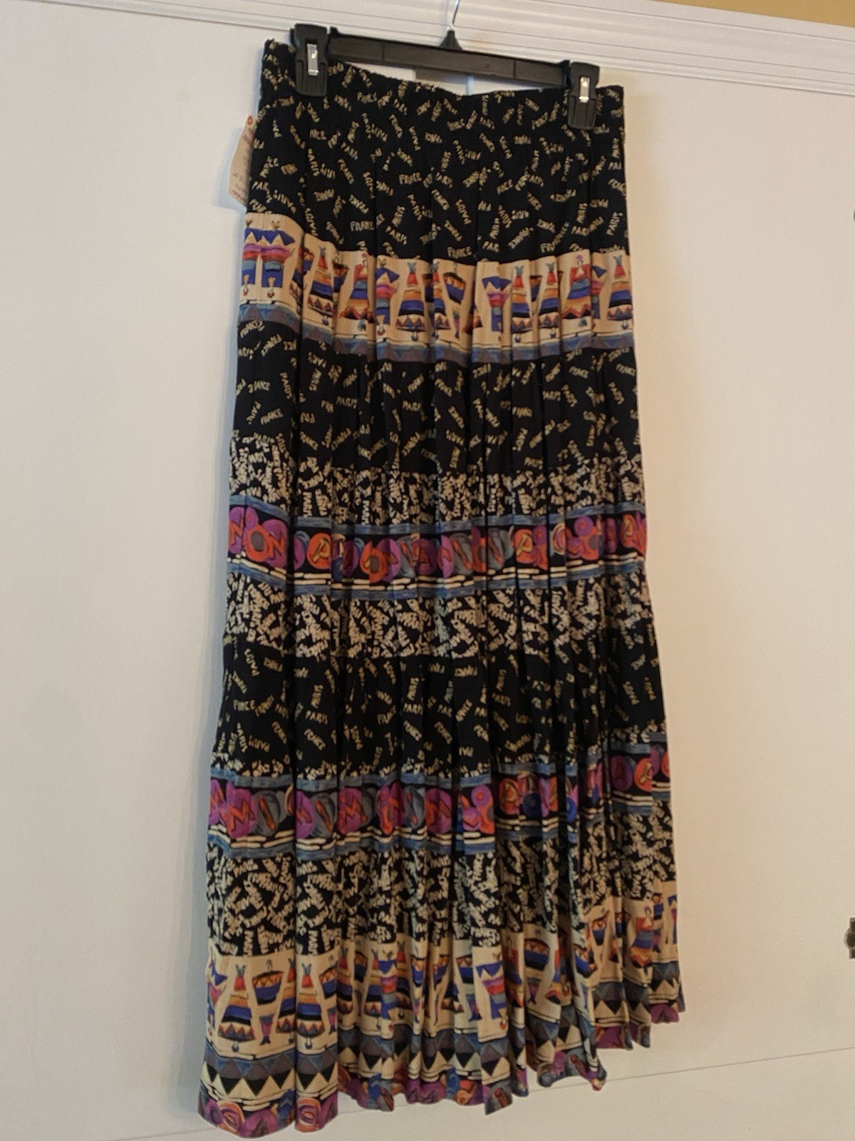 Vintage Carole Little Size 8 Rayon Paris Novelty Maxi Skirt USA MADE 90's NEW