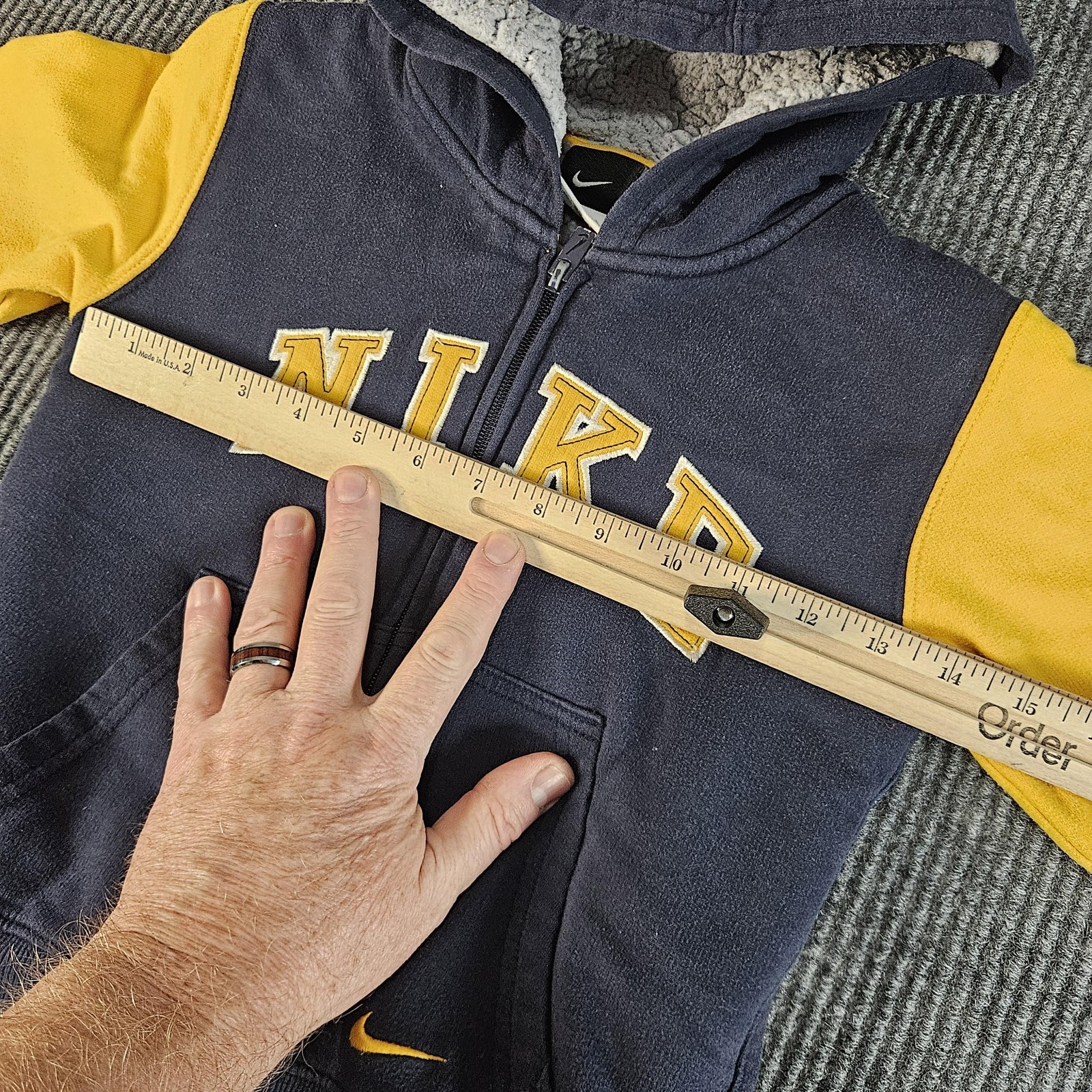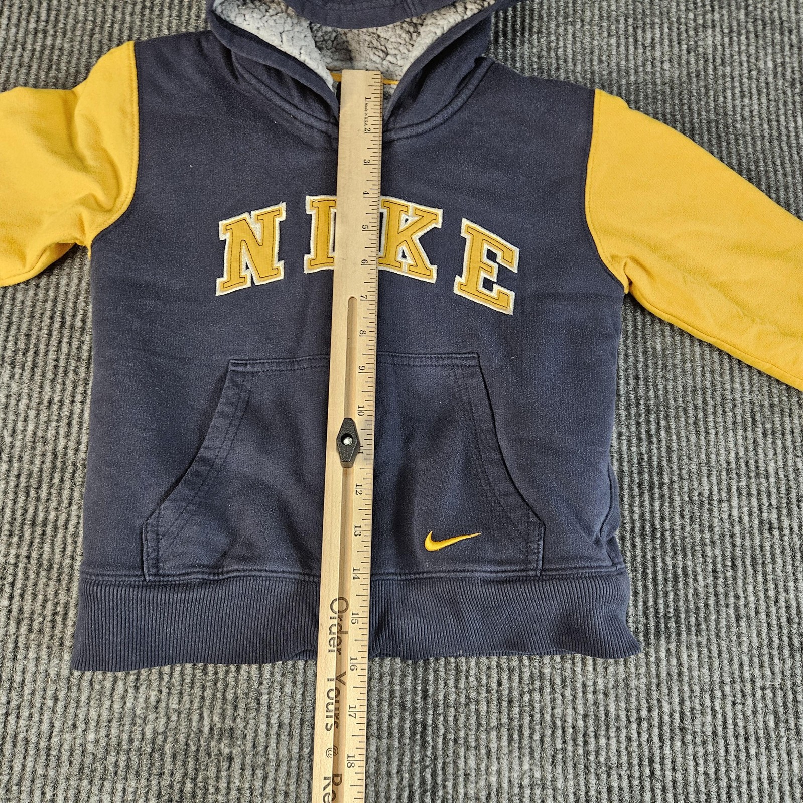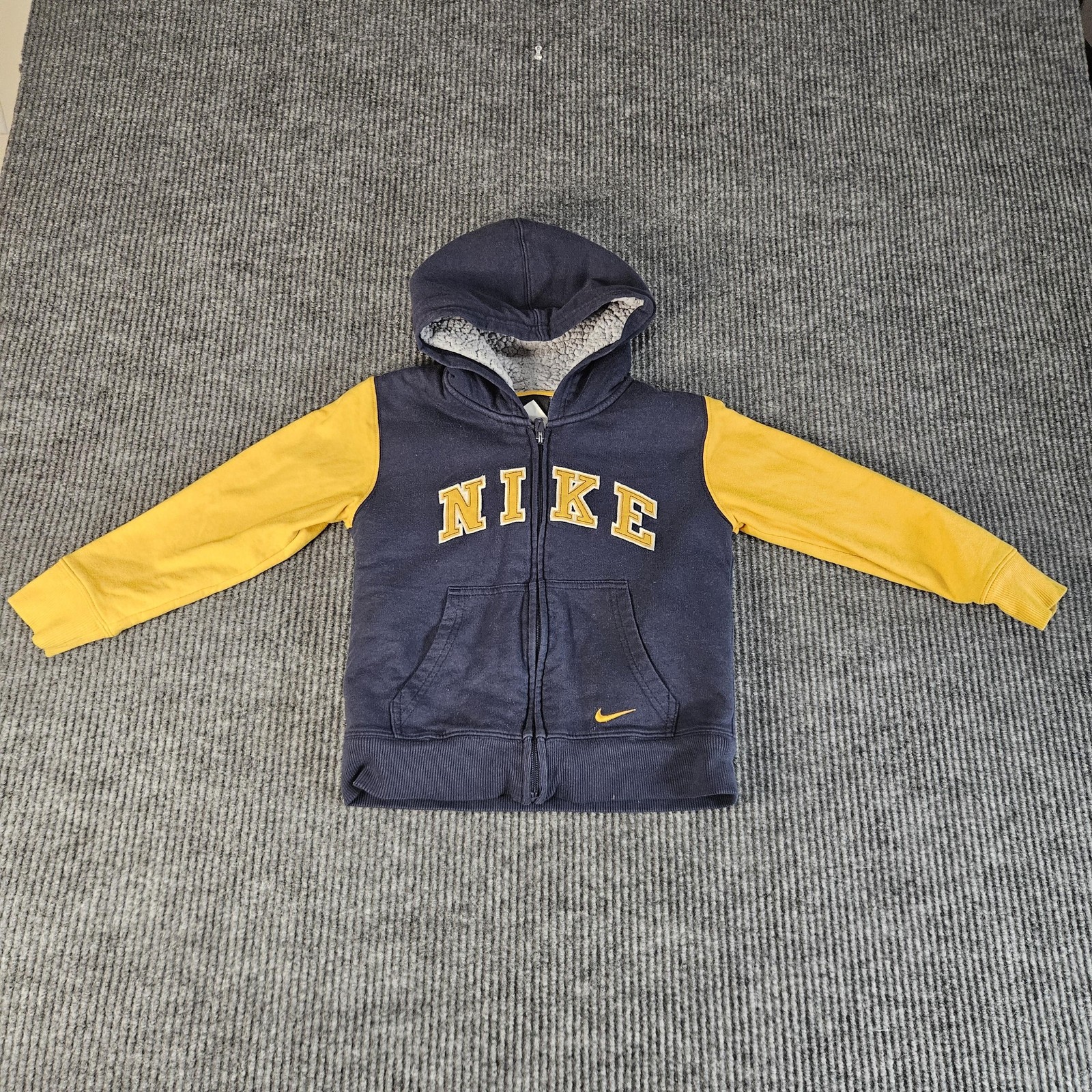 как выглядит Nike Hoodie Youth 6 Navy Yellow Sherpa Lined Full Zip Sweatshirt Jacket Swoosh фото