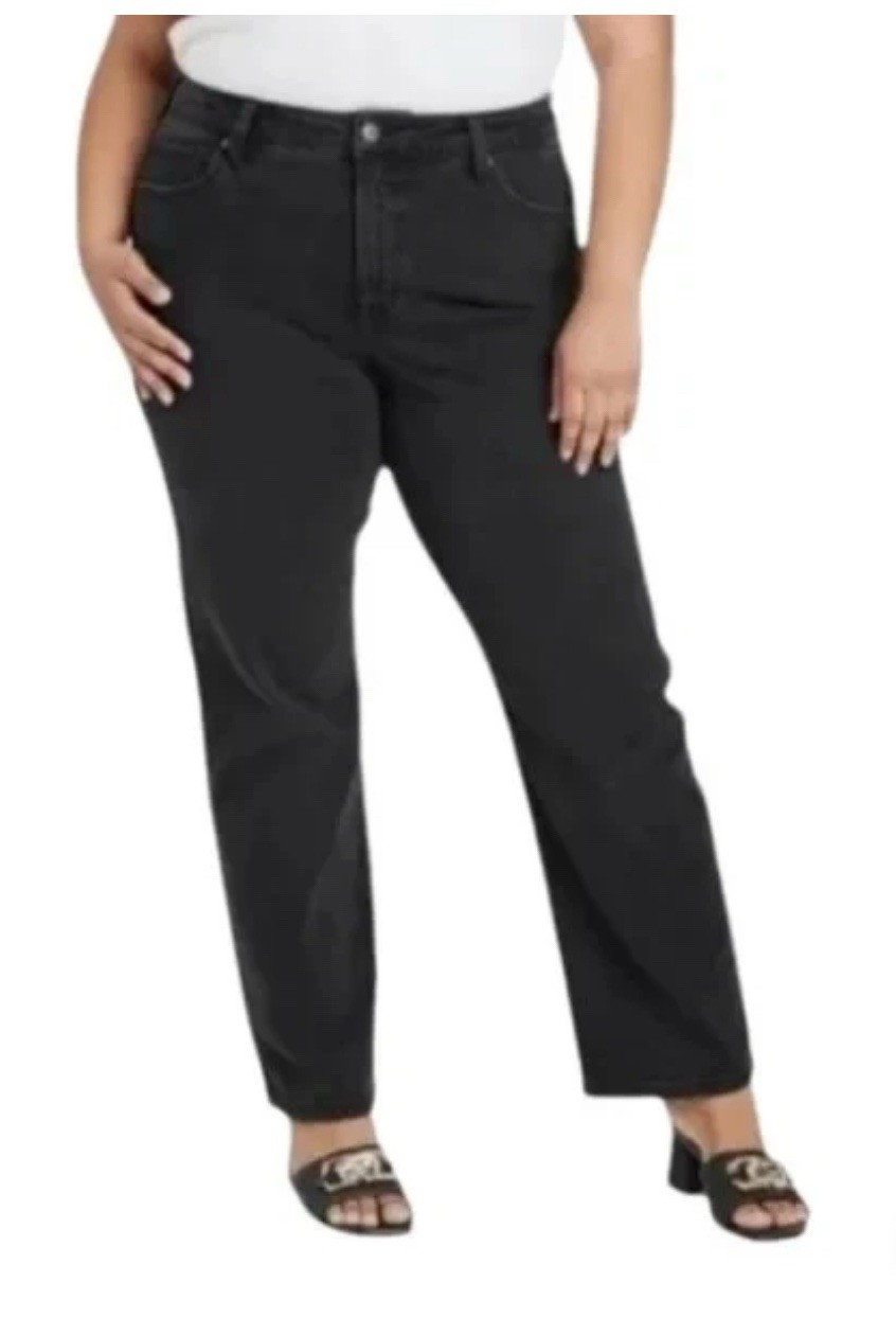 как выглядит Womens High-Rise Straight Leg Jeans - Ava Viv Black Size 17 R 36 MSRP фото