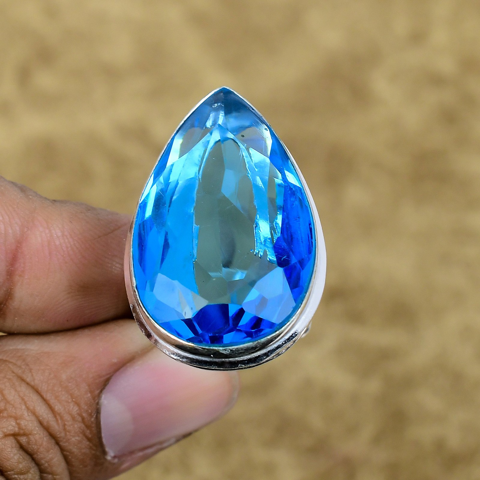как выглядит Natural London Blue Topaz Pear Gemstone Adjustable Ring 925 Sterling Silver Gift фото