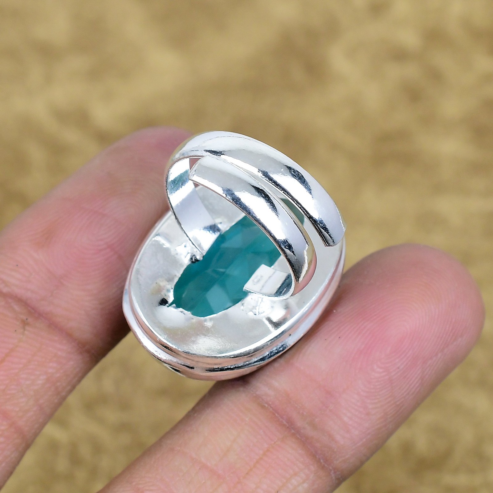 как выглядит Natural London Blue Topaz Oval Gemstone Adjustable Ring 925 Sterling Silver Gift фото