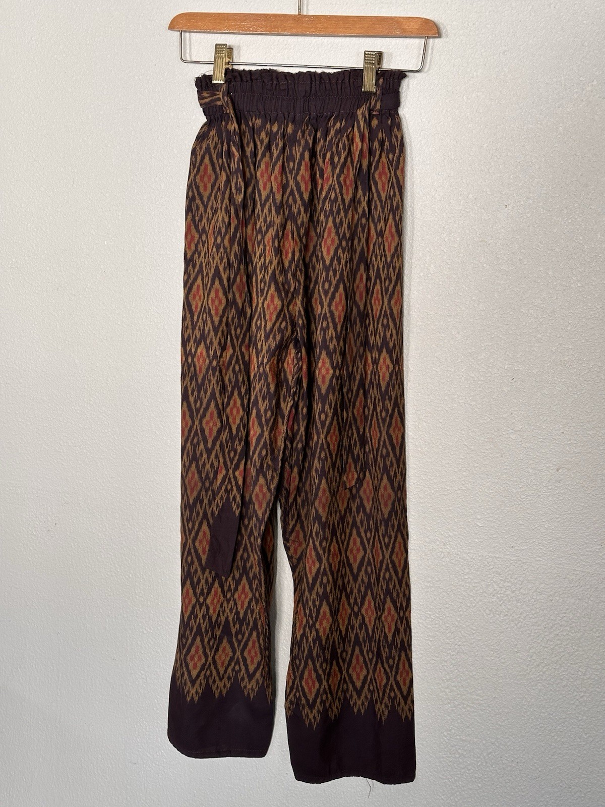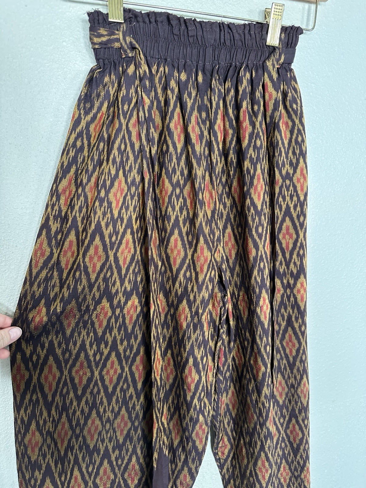 как выглядит Vintage 100 Thai Silk Pants S Handmade Pink Purple Wide Leg Boho VTG фото