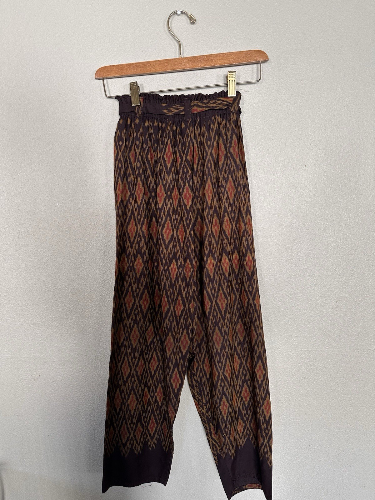 Vintage 100 Thai Silk Pants S Handmade Pink Purple Wide Leg Boho VTG
