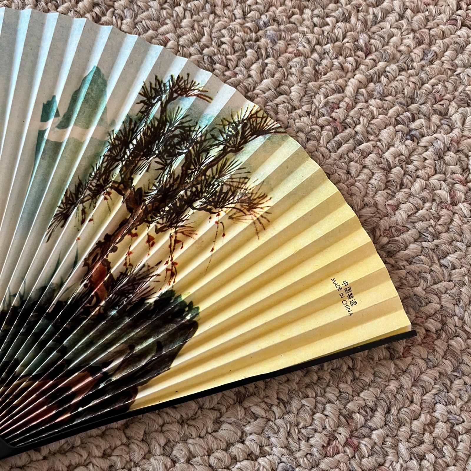 как выглядит Vintage Metal Paper Hand Fan Fold Up 1950-1960 China Tiger фото
