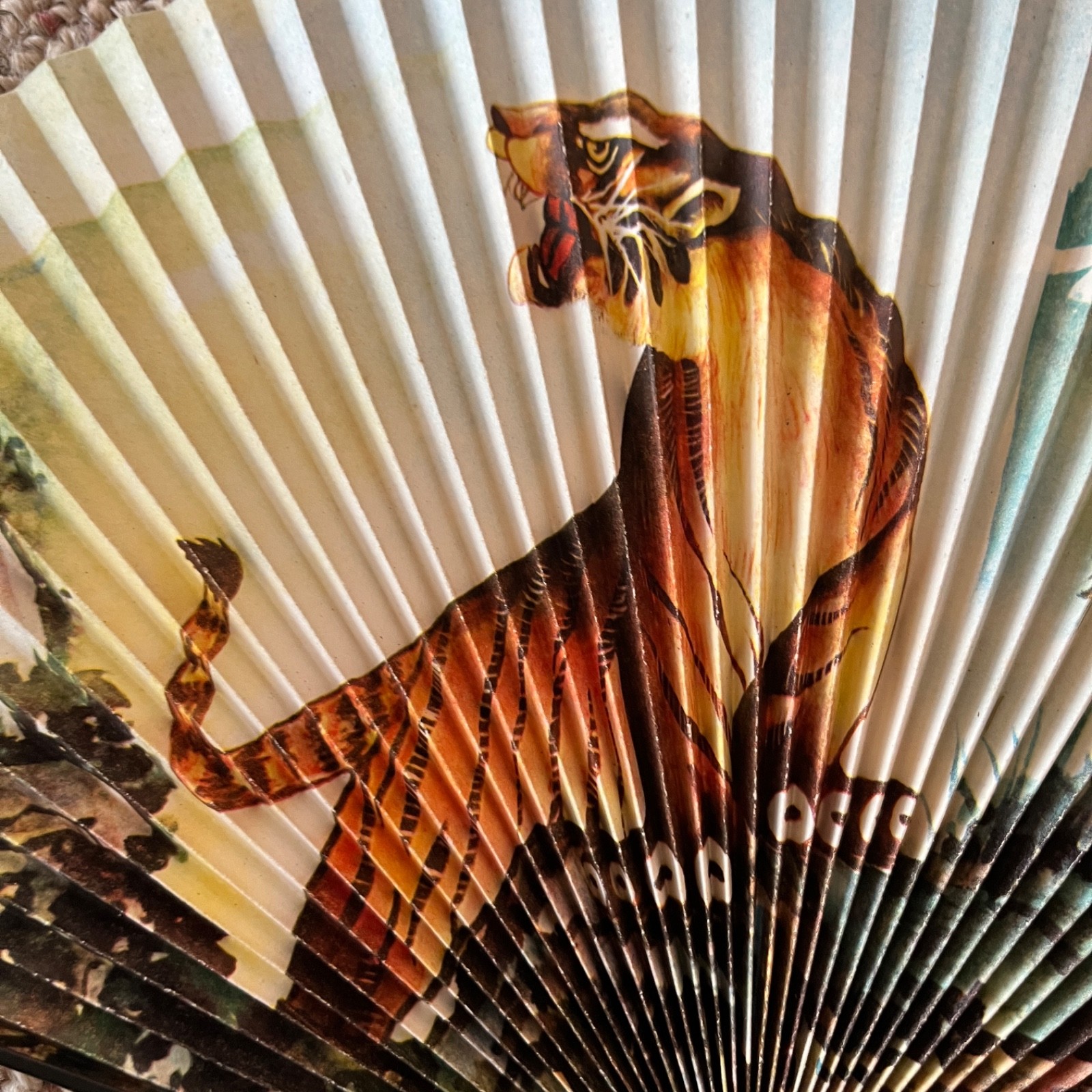 Vintage Metal Paper Hand Fan Fold Up 1950-1960 China Tiger