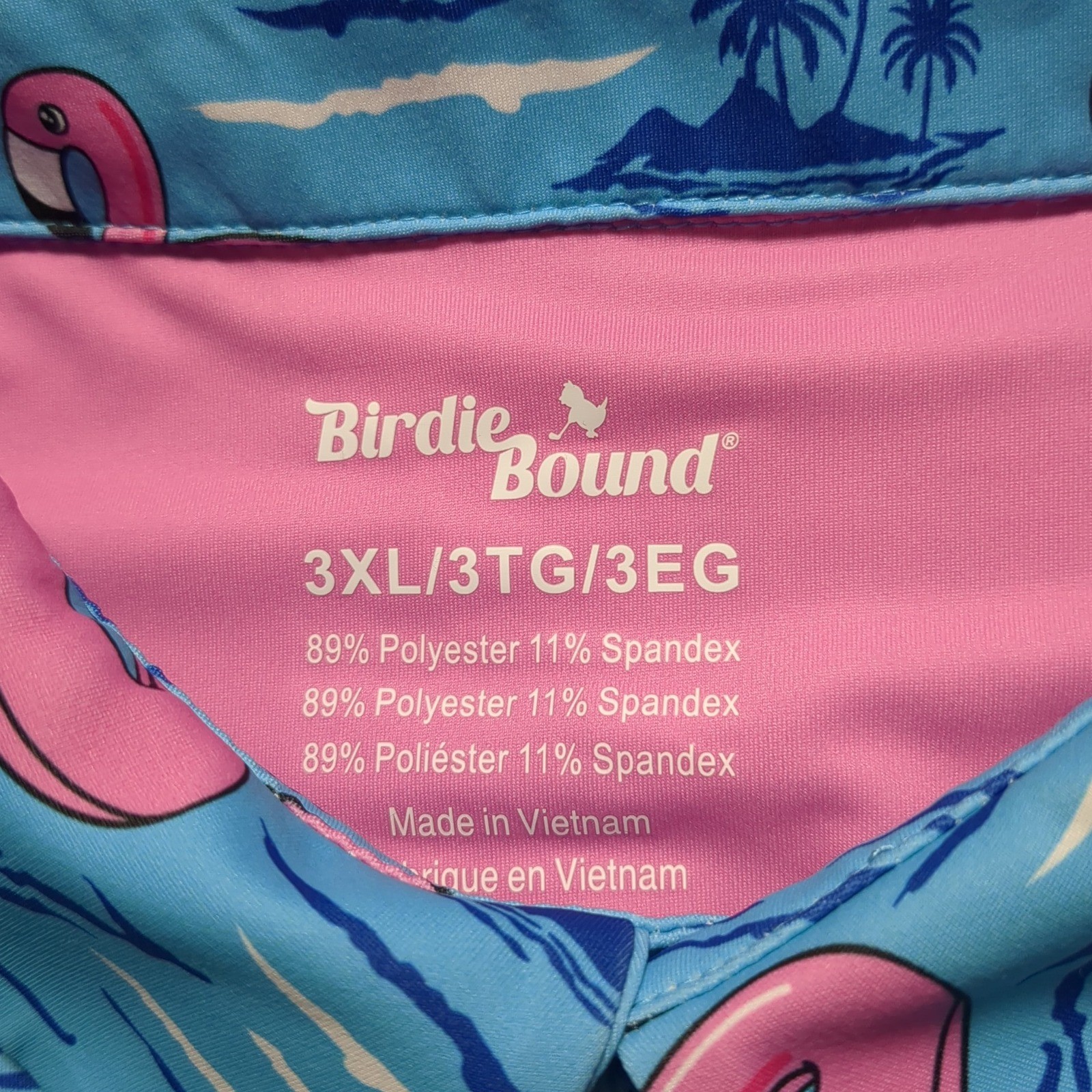 Birdie Bound Mens 3XL Flamingo Float Tropical Golf Polo Shirt Blue Pink EUC