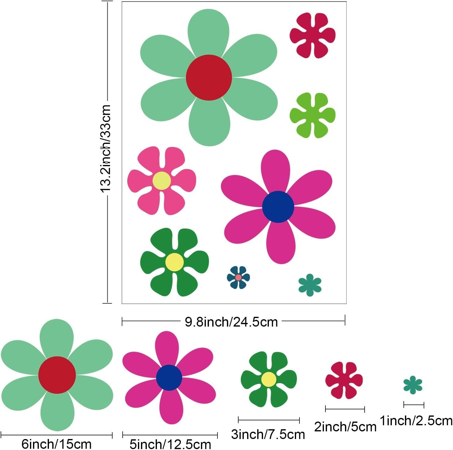 12 Sheets Daisy Stickers Flower Car Decals Self Adhesive Vinyl Retro Butterfl...