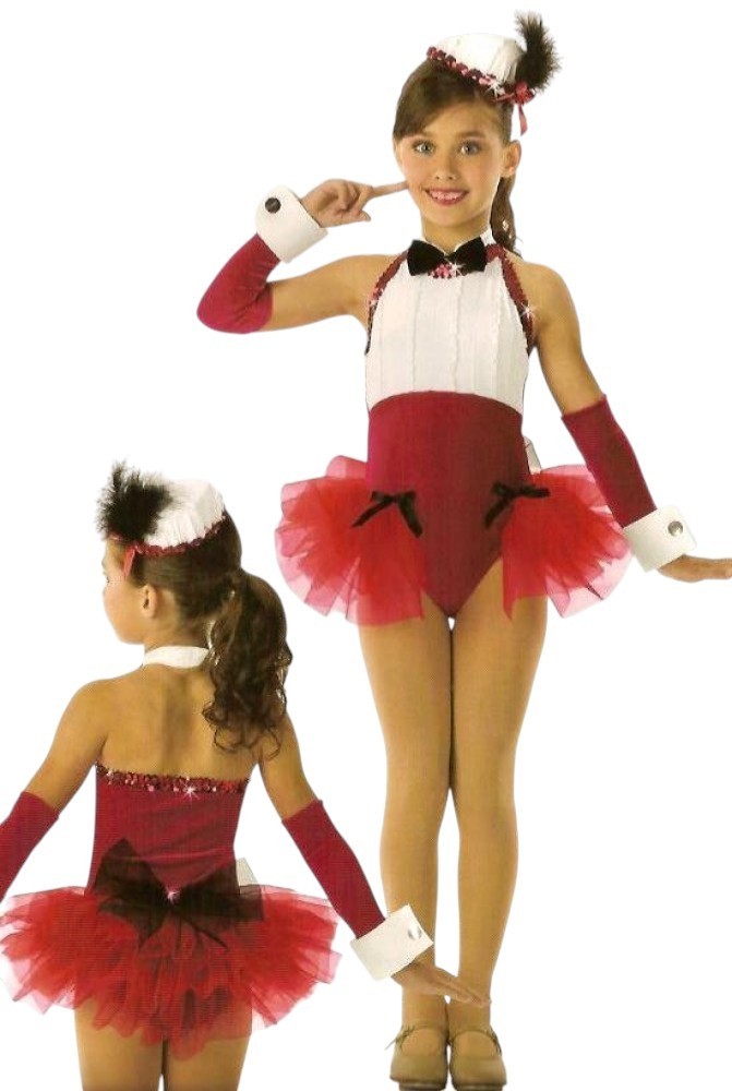 Lot of 5 Let Me Entertain You Child X-Small Dance Costume w/Red Feather Mitts