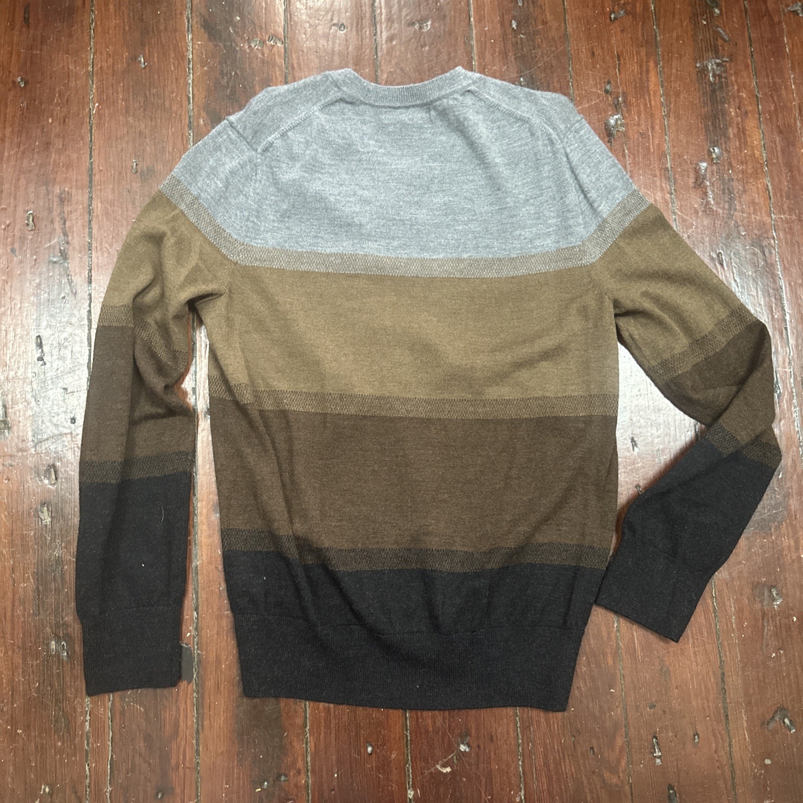 Men s Merino Wool Blend Banana Republic Medium V Neck Sweater Striped Classic