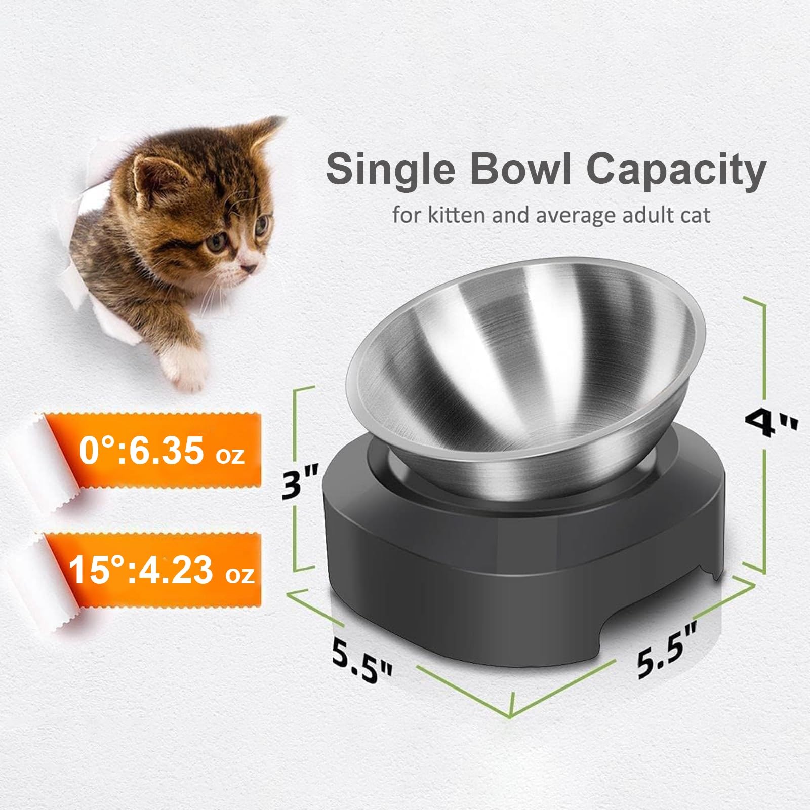 Raised Cat Food Bowl, Stainless Steel Cat Dish for Food Water Anti Vomiting E