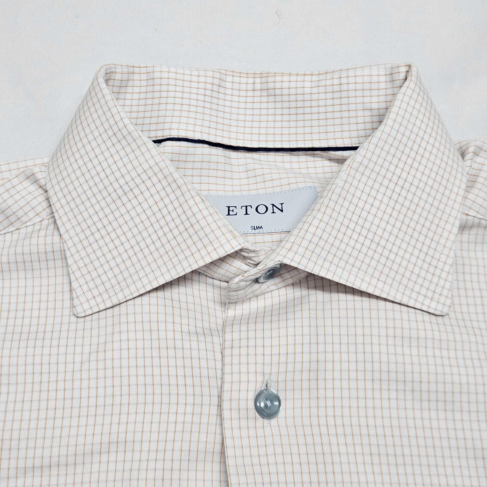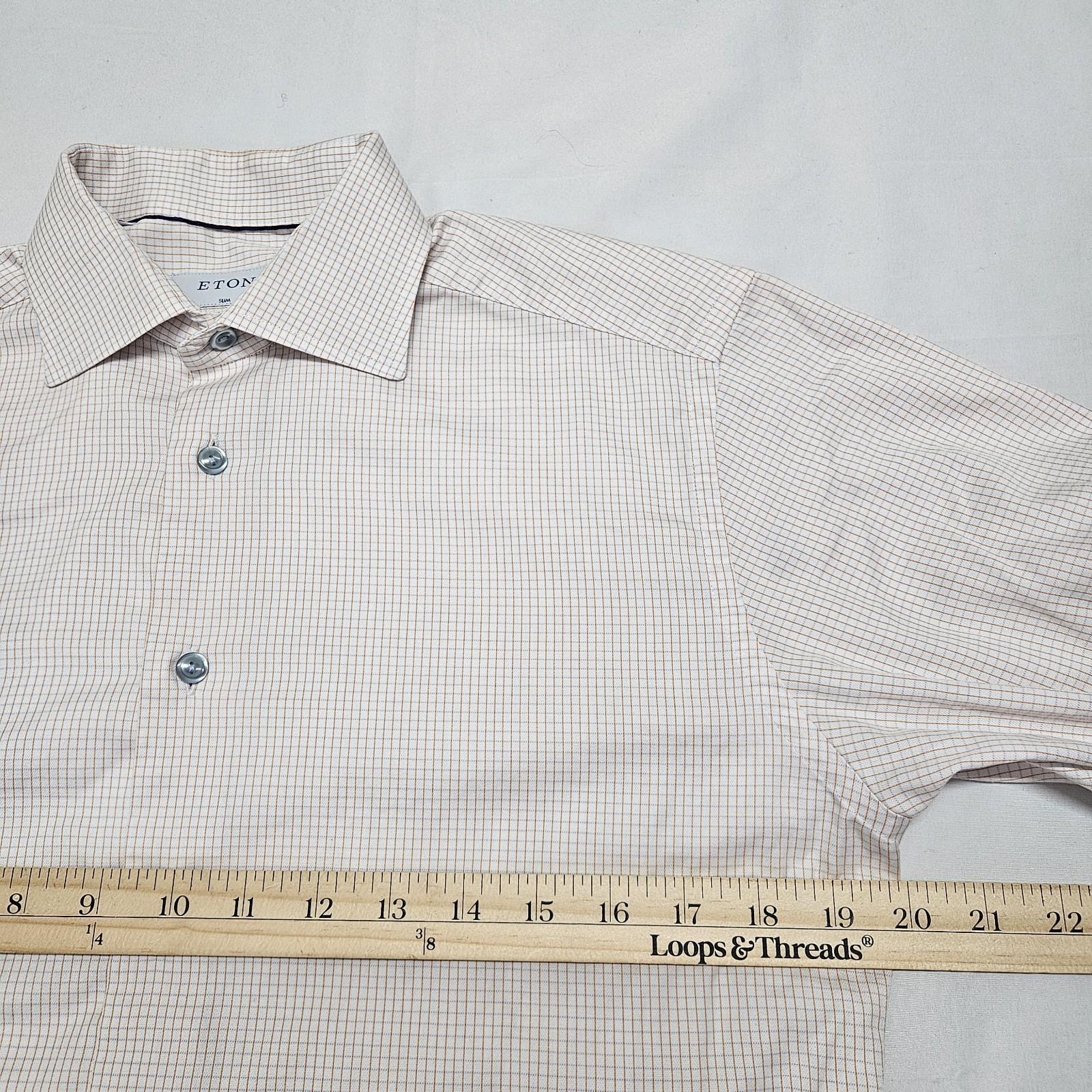 ETON Mens Slim Fit Dobby White Checkered Button Down Dress Shirt 39/15.5