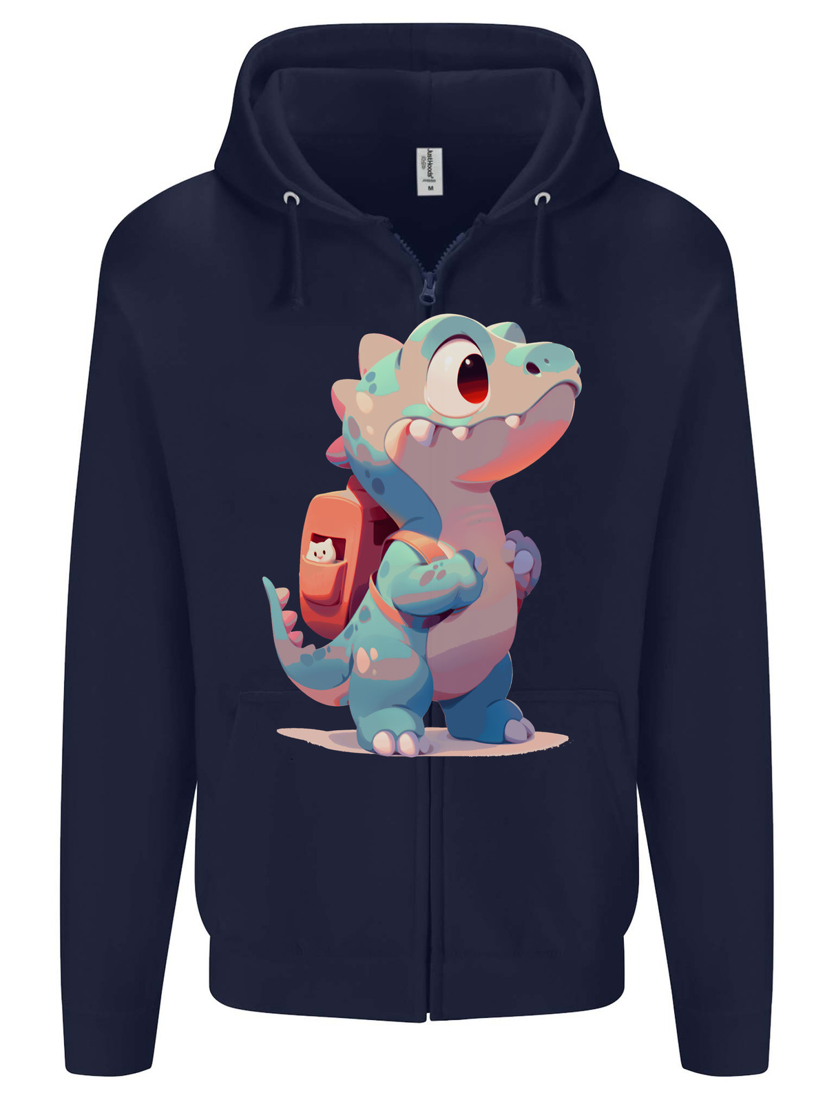 как выглядит A Cute T-Rex Dinosaur With Backpack Mens Zip Up Hoodie фото