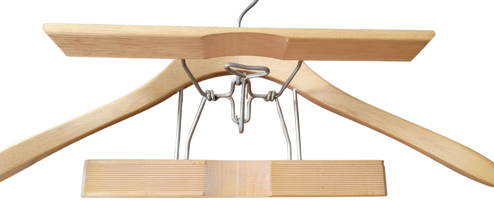 Made in Taiwan Vintage 17 1/2 Heavy Duty Wooden Suit Pant Hanger Combo Clamp