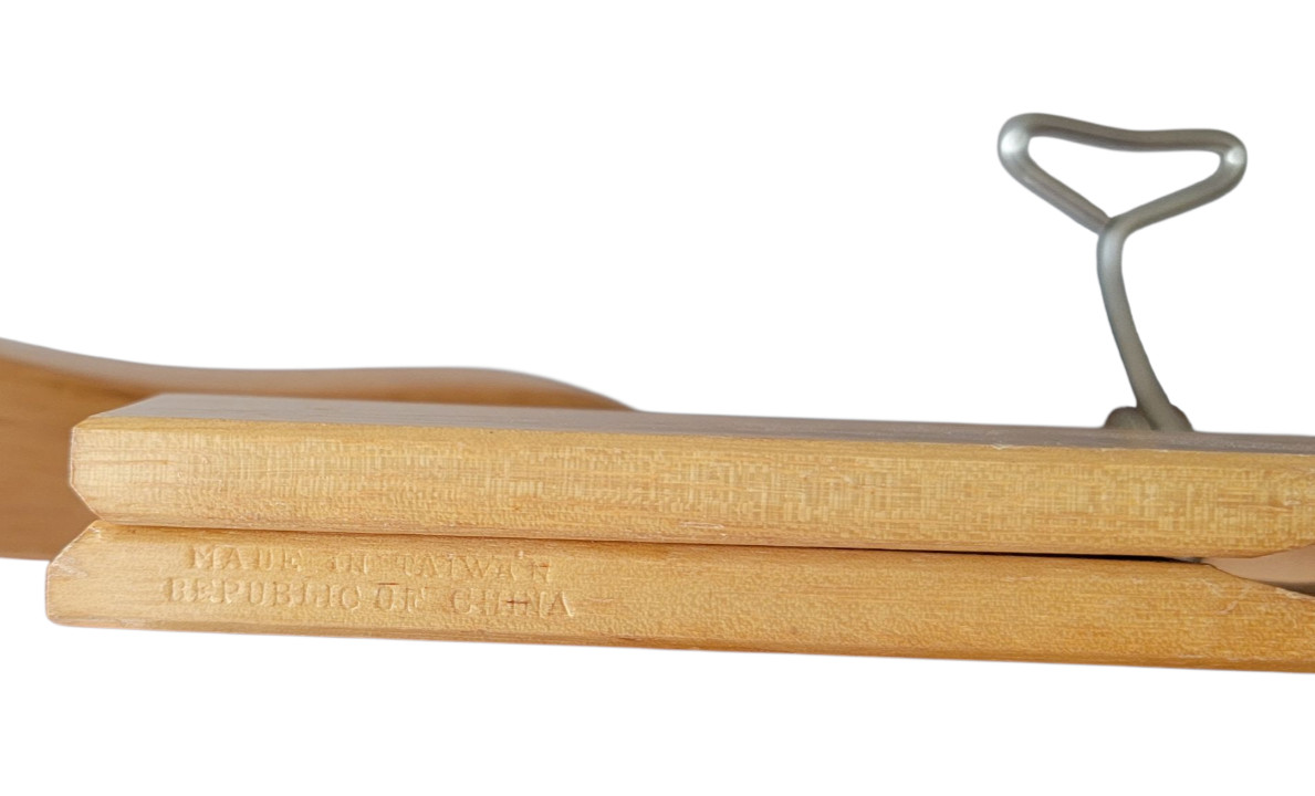 как выглядит Made in Taiwan Vintage 17 1/2 Heavy Duty Wooden Suit Pant Hanger Combo Clamp фото