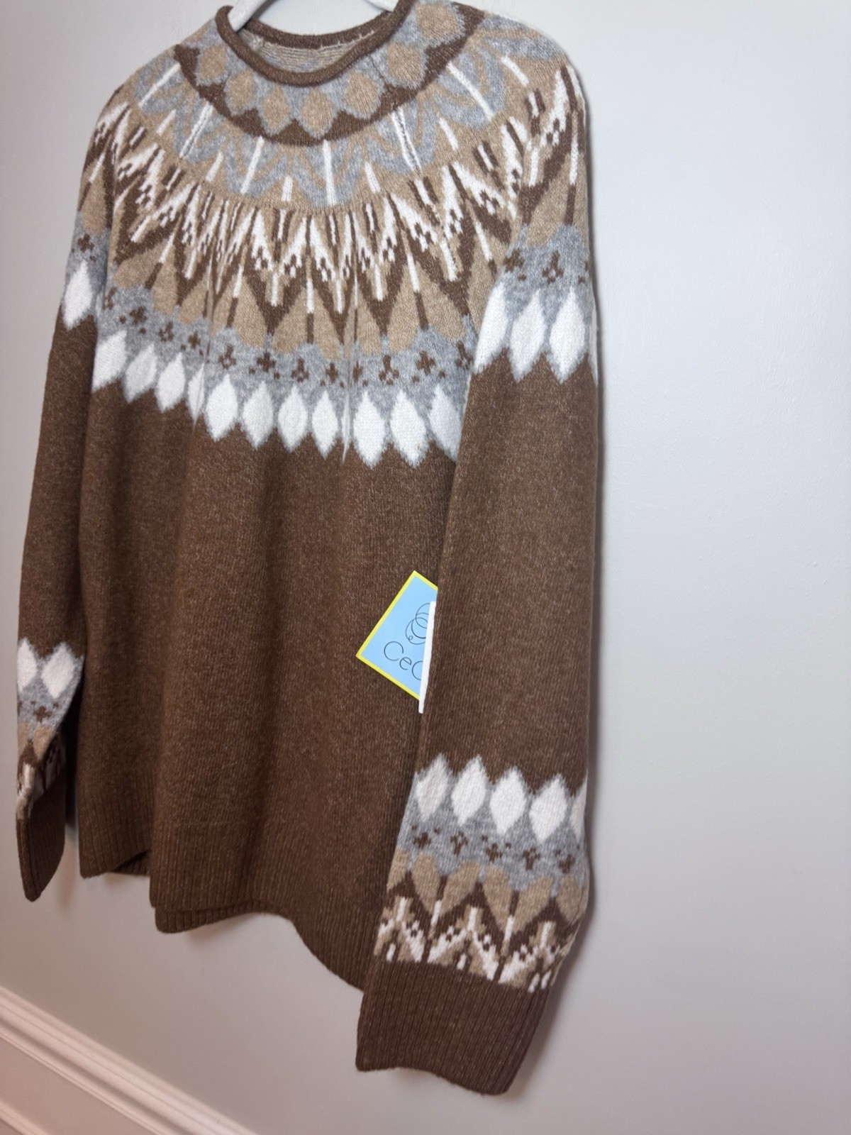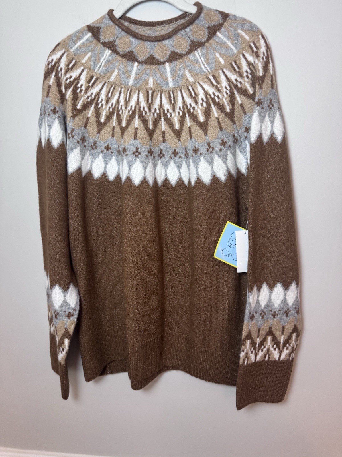 как выглядит Cece Women s Glamour Melody Long Sleeve Funnel Neck Fair Isle Sweater XL NWT 69 фото