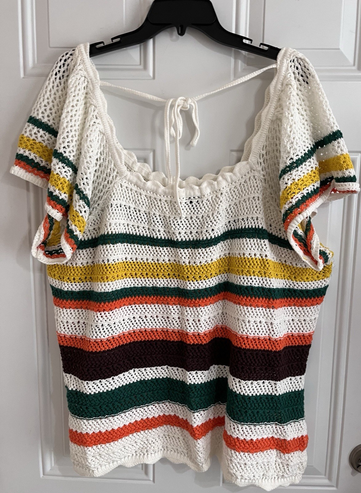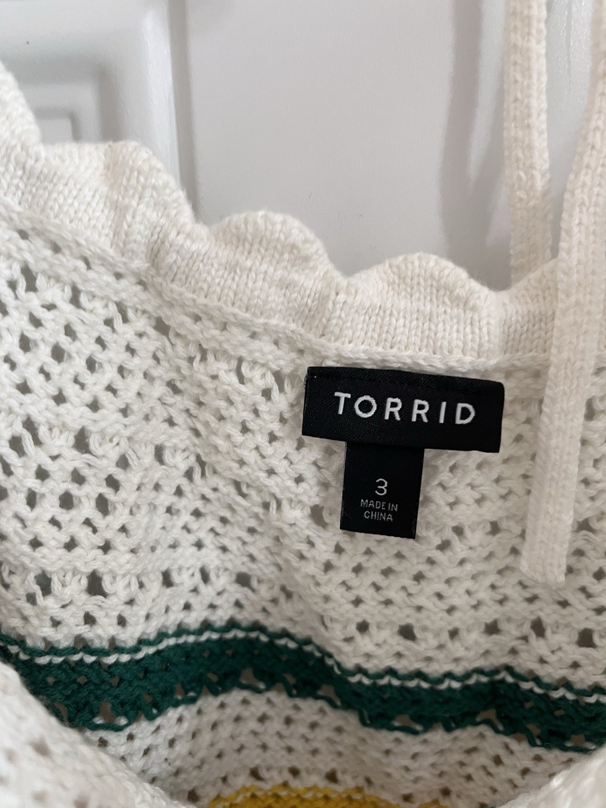 как выглядит Torrid 3x Top Crochet Striped Knit Cotton Top Summer Sweater Square Neck Boho фото