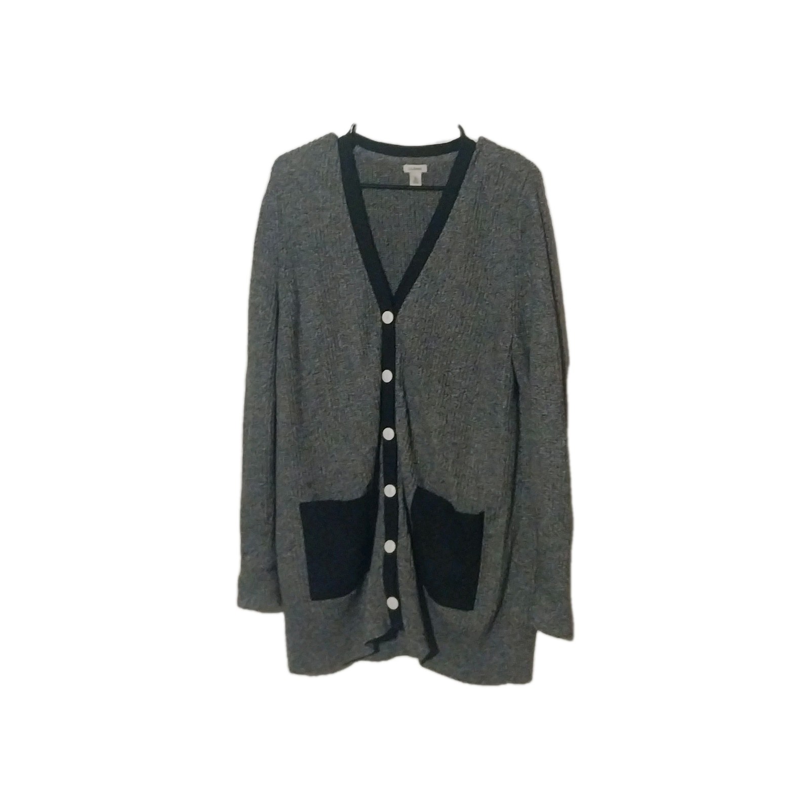 L.L Bean Women's Coastal Cotton Sweater, Cardigan Size XL Nautical Prep Grey