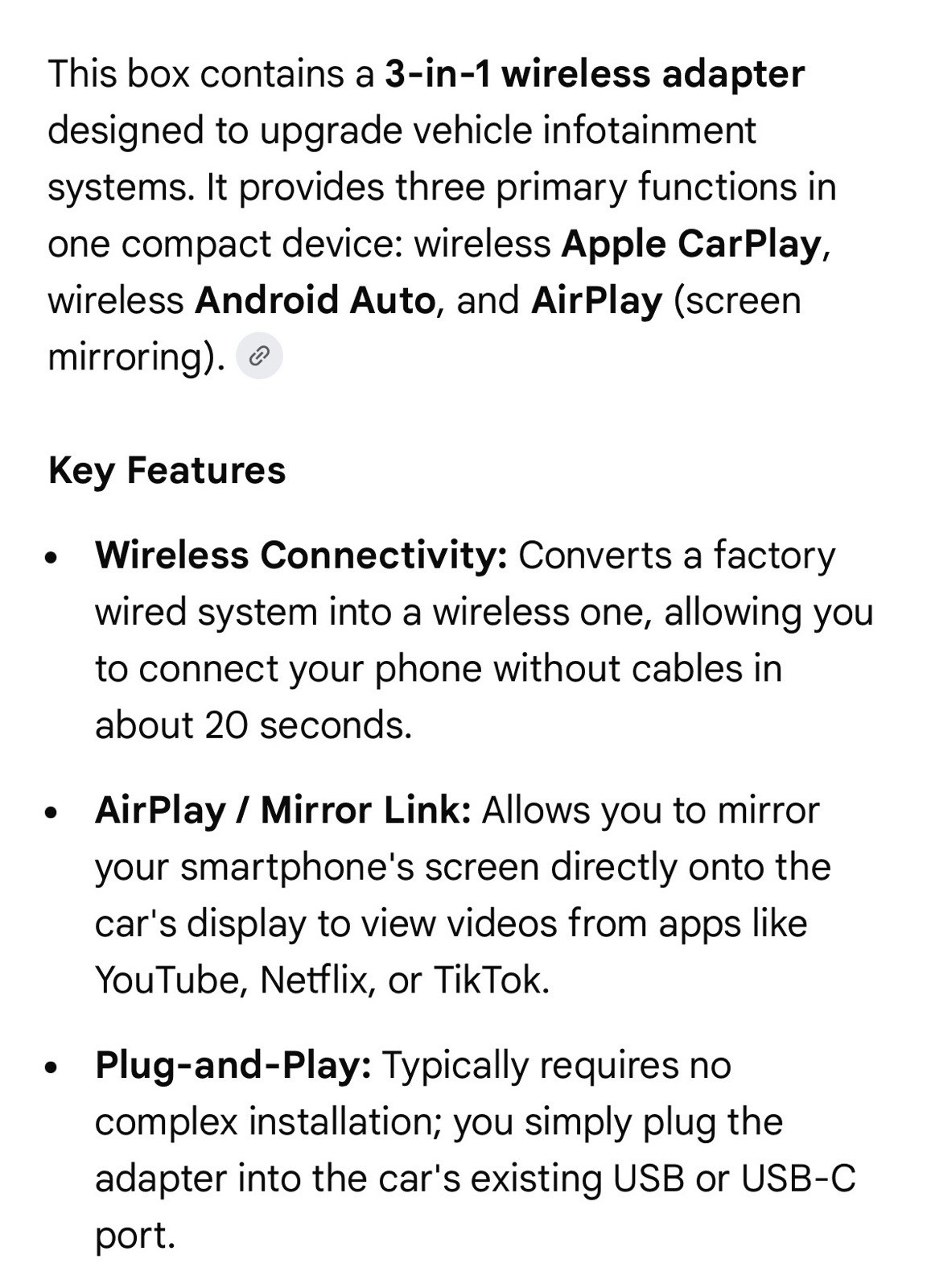 как выглядит New 3 IN 1 CarPlay/Android Auto/AirPlay Wireless Adapter Plug Play Easy To Use фото