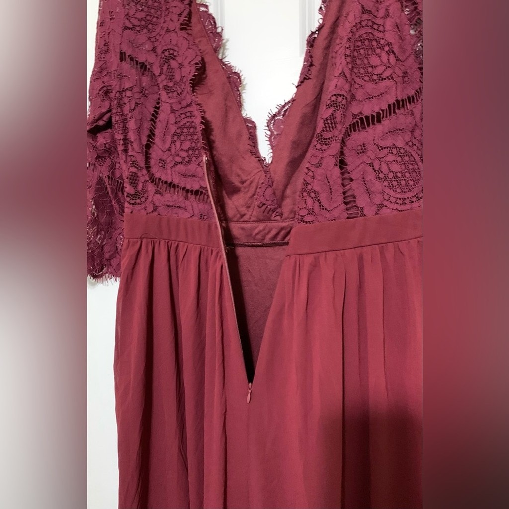 как выглядит NWT Maniju L Formal Gown Burgundy Style m25891 Lace Bodice фото