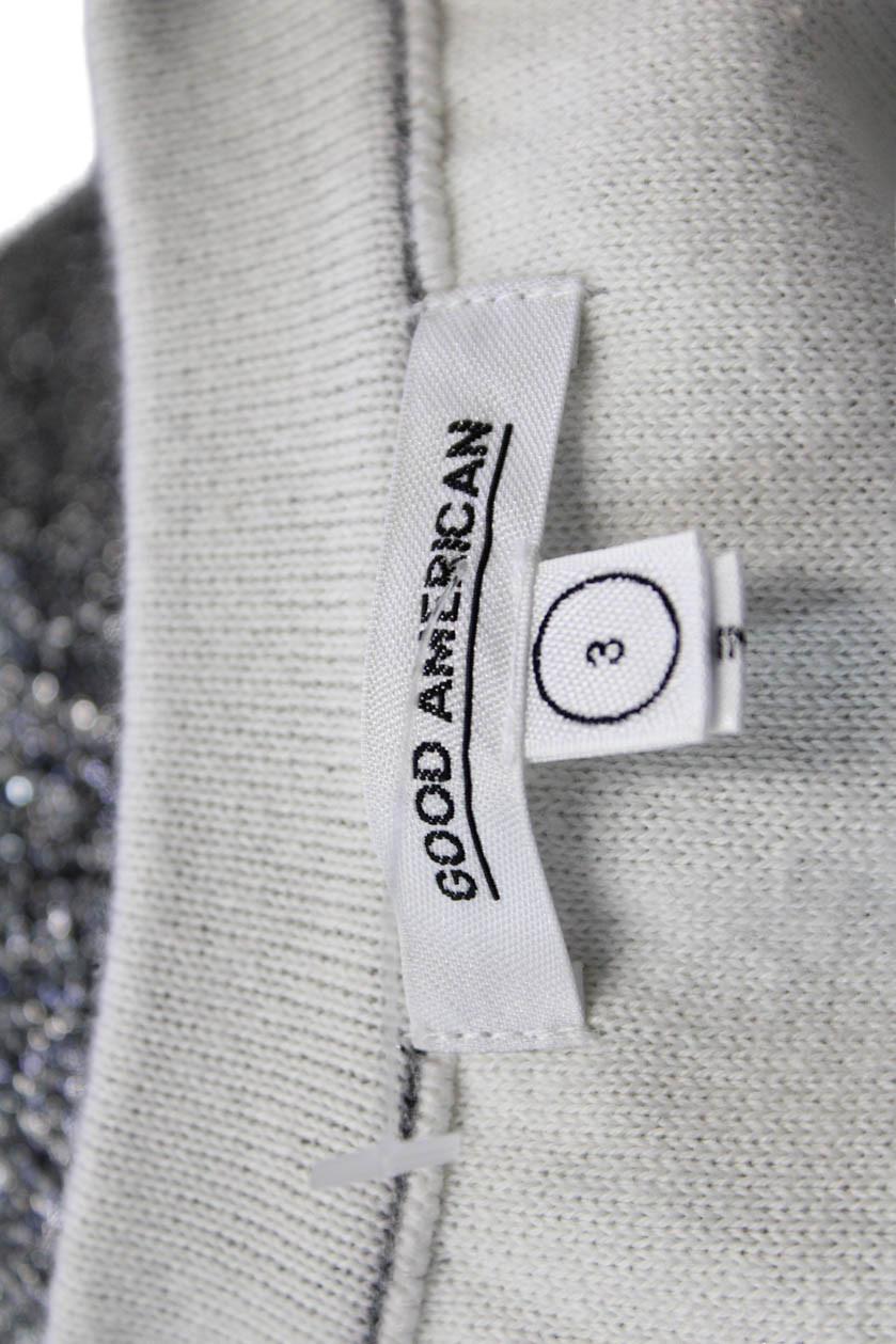 как выглядит Good American Womens Front Zipper Long Sleeves Sweater Silver Metallic Size 3 фото