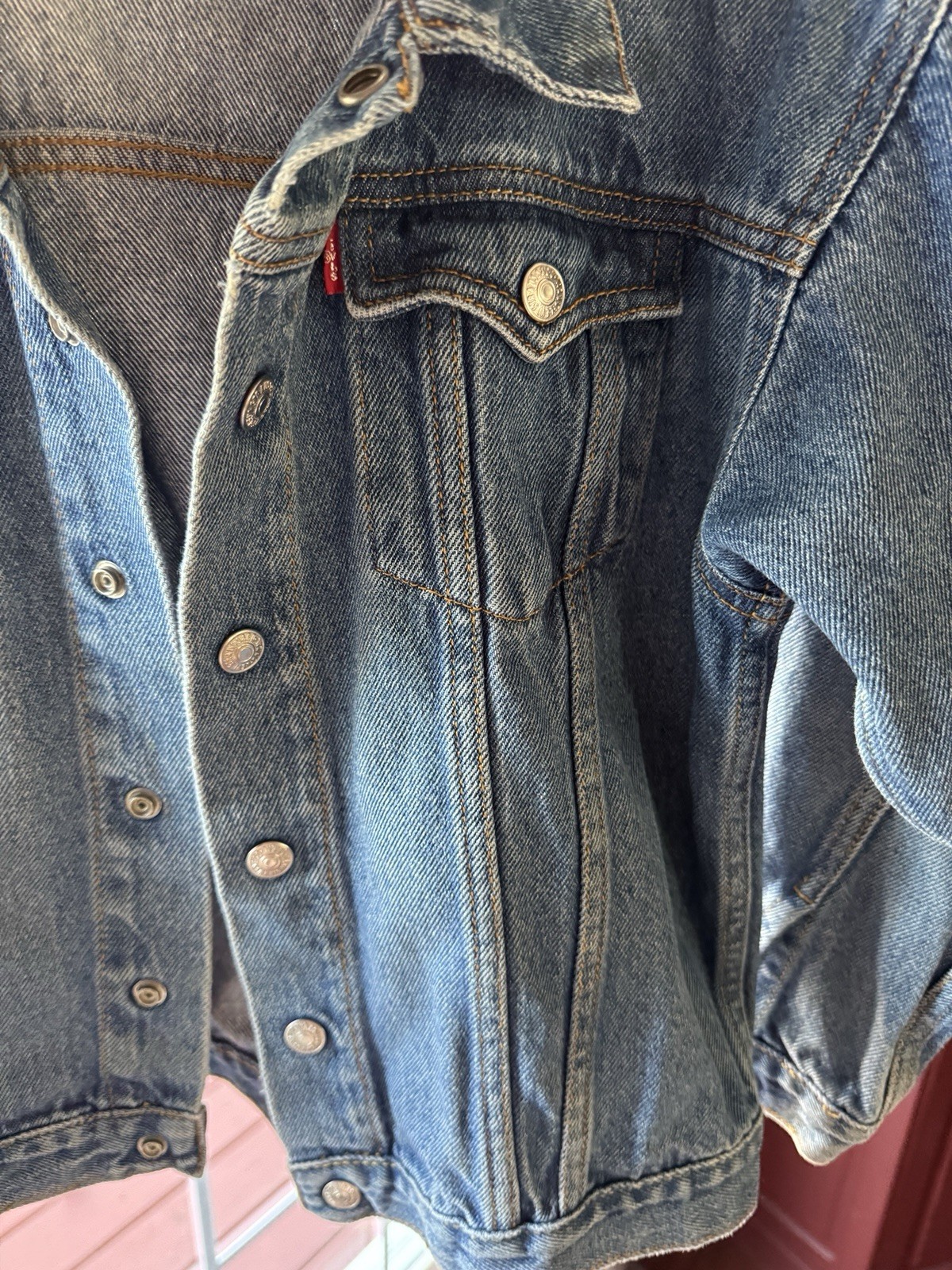 как выглядит Levis Denim Jacket Kids 7X Blue Button Up Pockets Casual фото