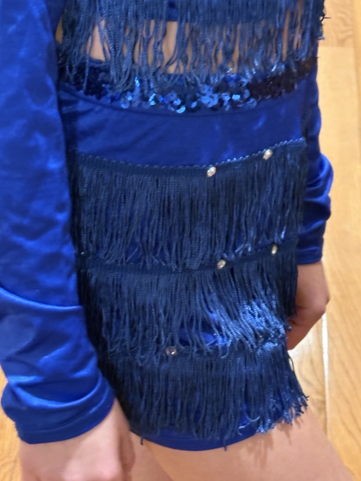как выглядит Dance Competition 2 Piece Solo Costume Royal Blue With Fringe And Rhinestones фото