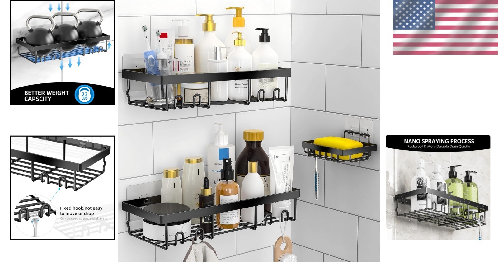 3-Pack Rustproof Stainless Steel Shower Caddy with Soap Holder - No Drilling