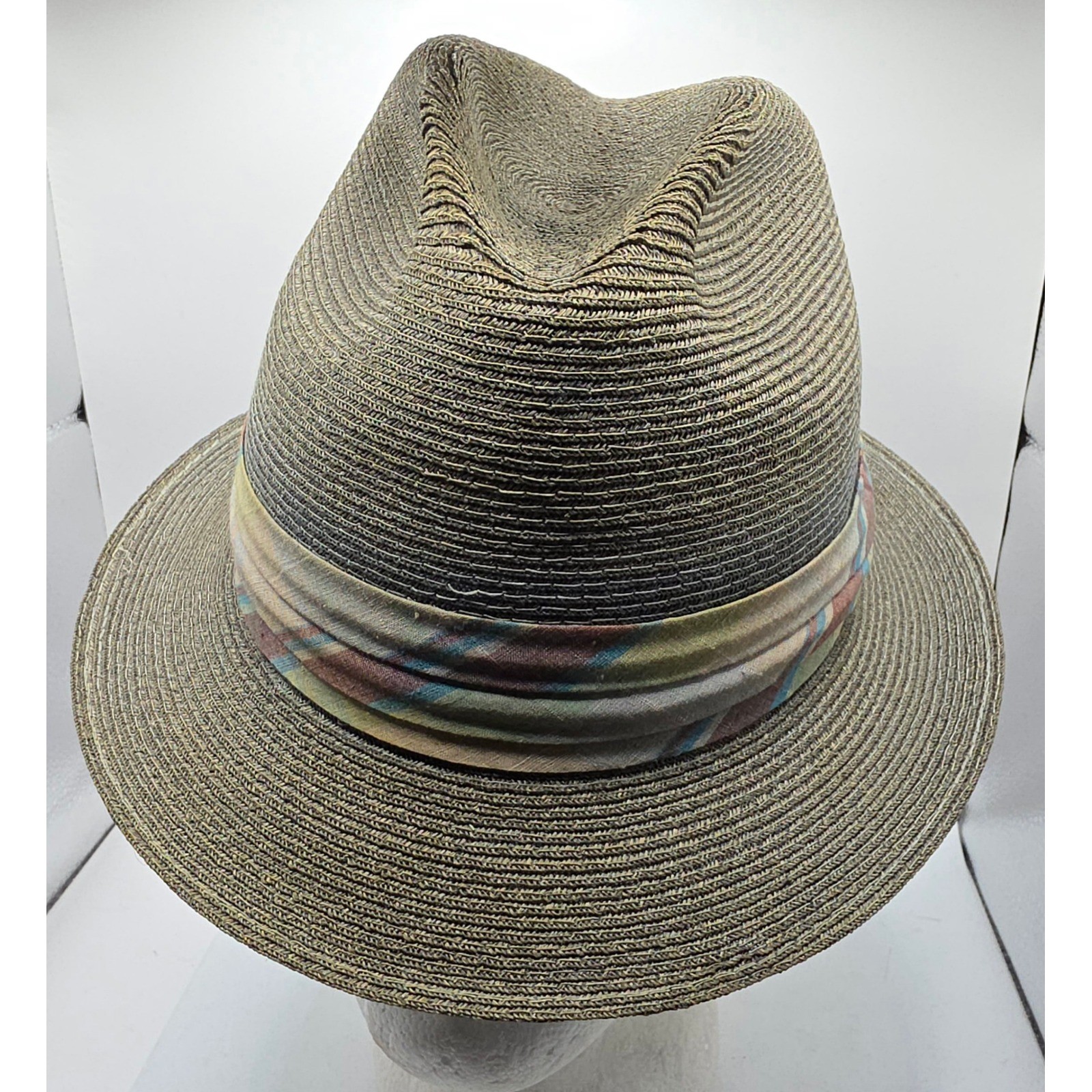 Vintage Stetson Straw Panama Fedora Hat Gray Men's 7 1/8 Woven Pastel Plaid Band