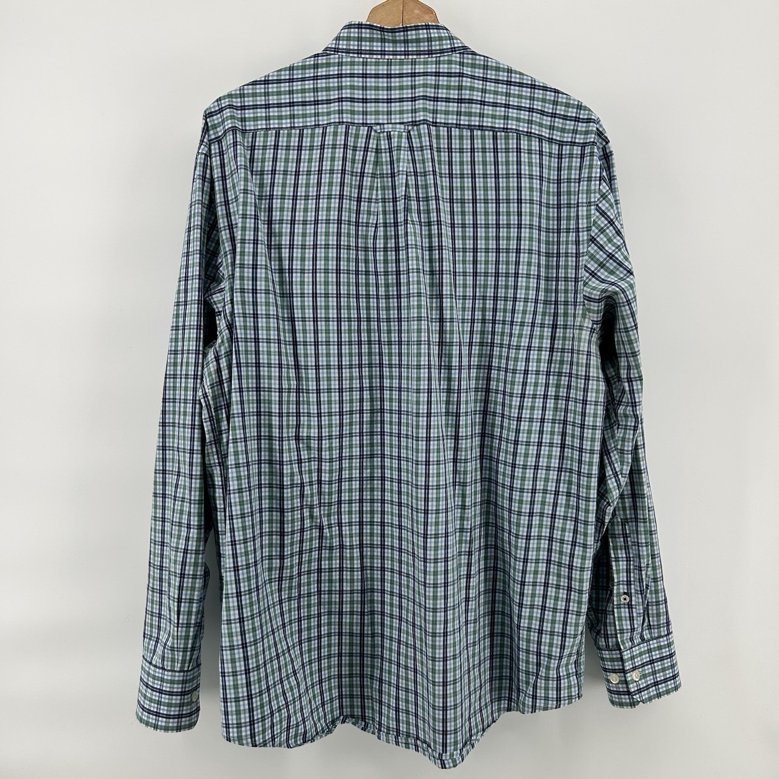 как выглядит IZOD Premium Essentials Mens Long Sleeve Shirt Sz L Plaid Flip Cuff Blue Green фото