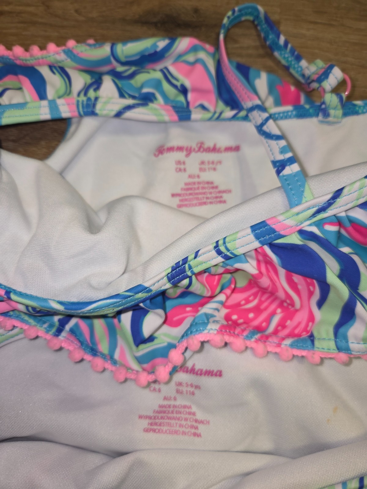 как выглядит Tommy Bahama girl 6 2Pc Swimsuit Top Bottom Set Ruffle Tropical Multicolor фото