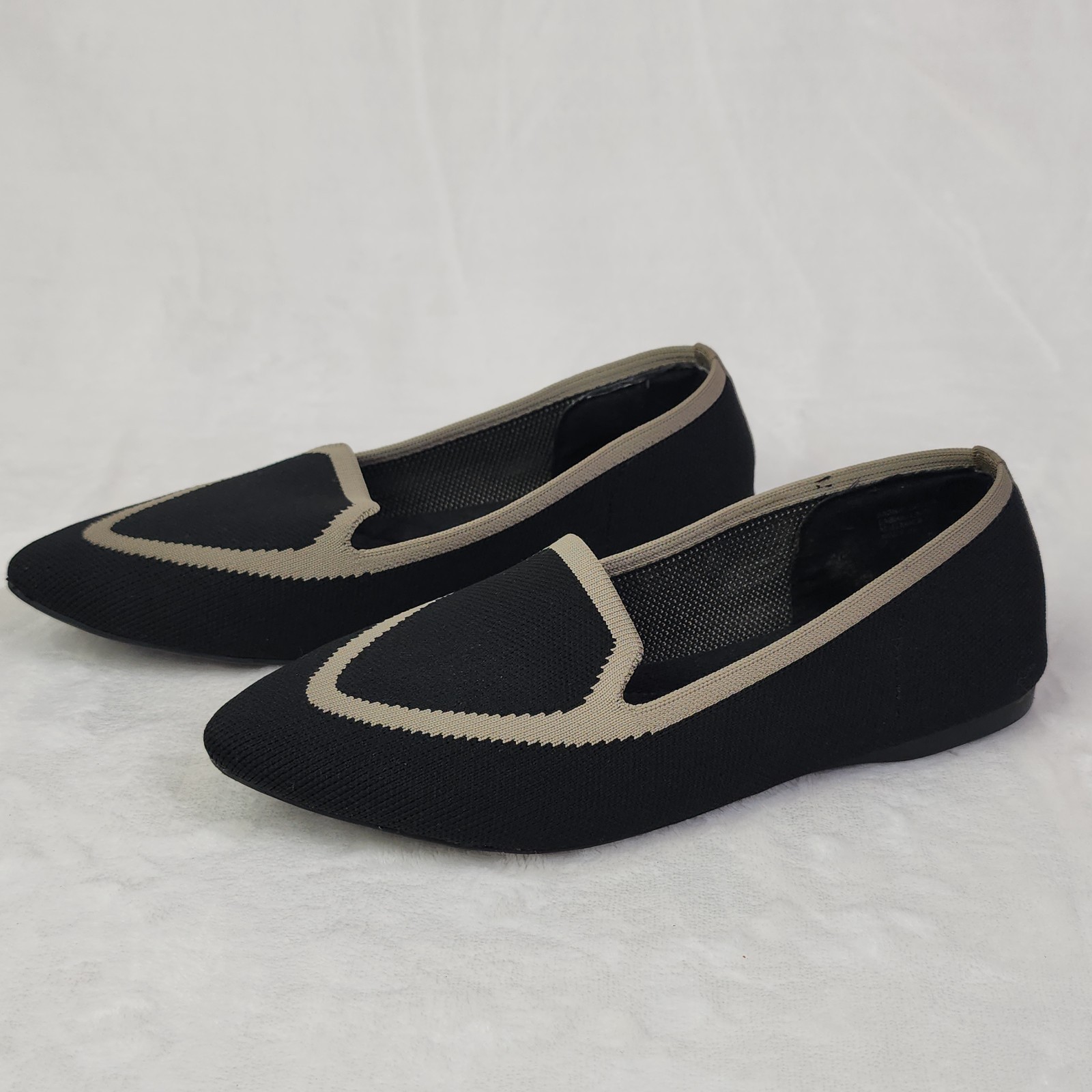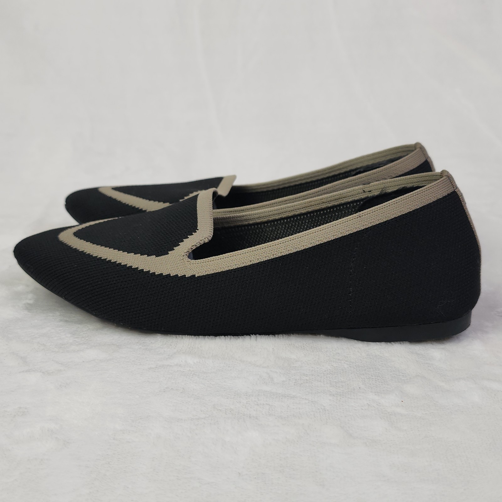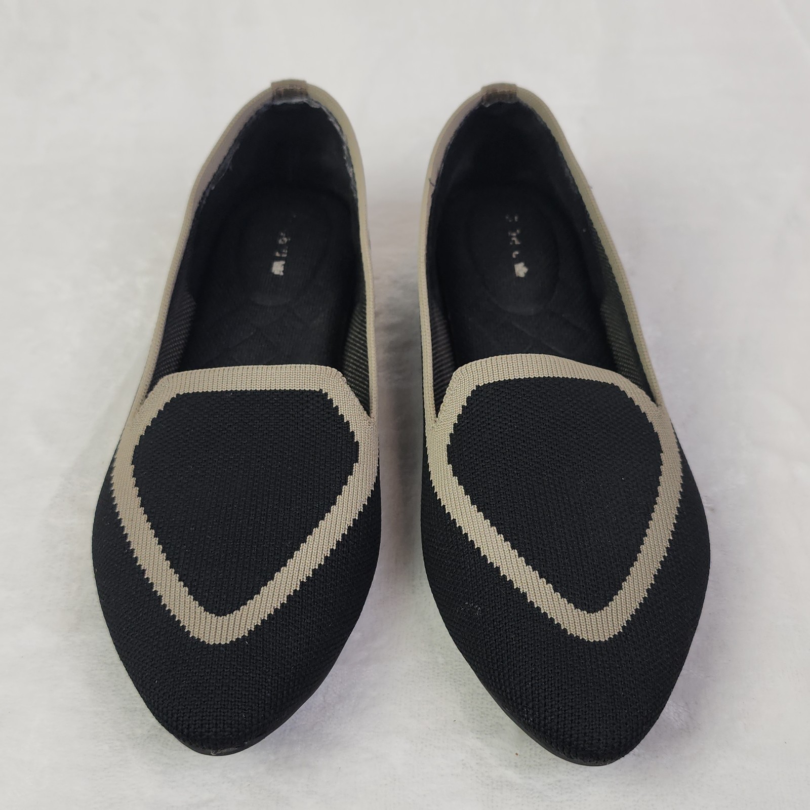 Birdies Blackbird Flat Black Cream Knit Slip On Pointed Toe Women's Size 7
