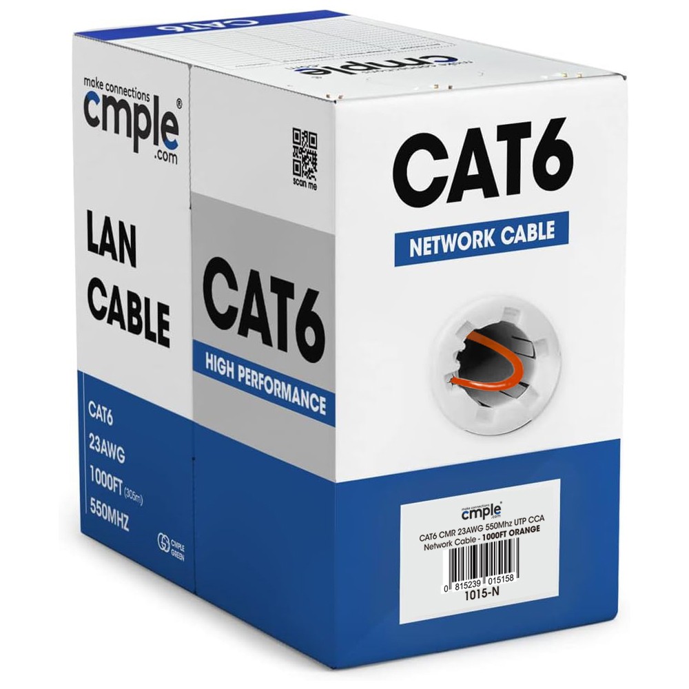 Cat6 Cable 1000 FT Cat 6 UTP Ethernet Bulk Cord Internet Wire Orange - PACK of 2