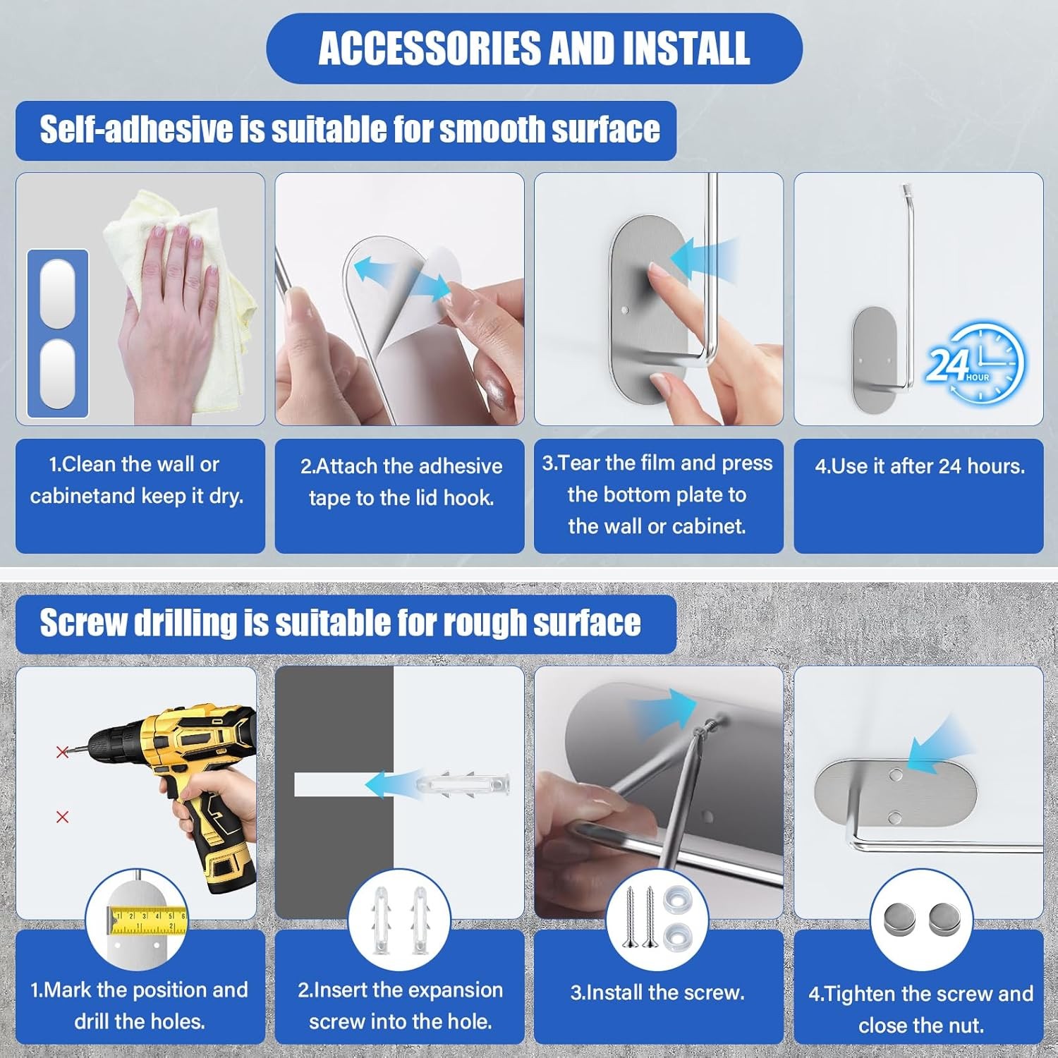 Tumbler Lid Organizer 2 Pack,Space Saving Cup Hook for Simple Silver