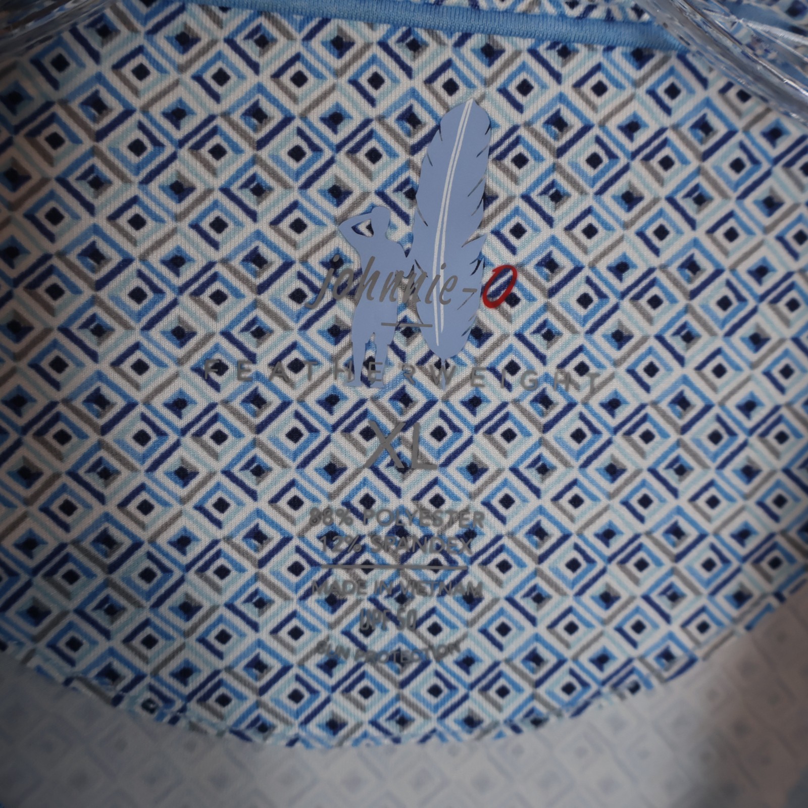 Johnnie O Polo Shirt Mens XL Blue Featherweight Geometric Golf Performance