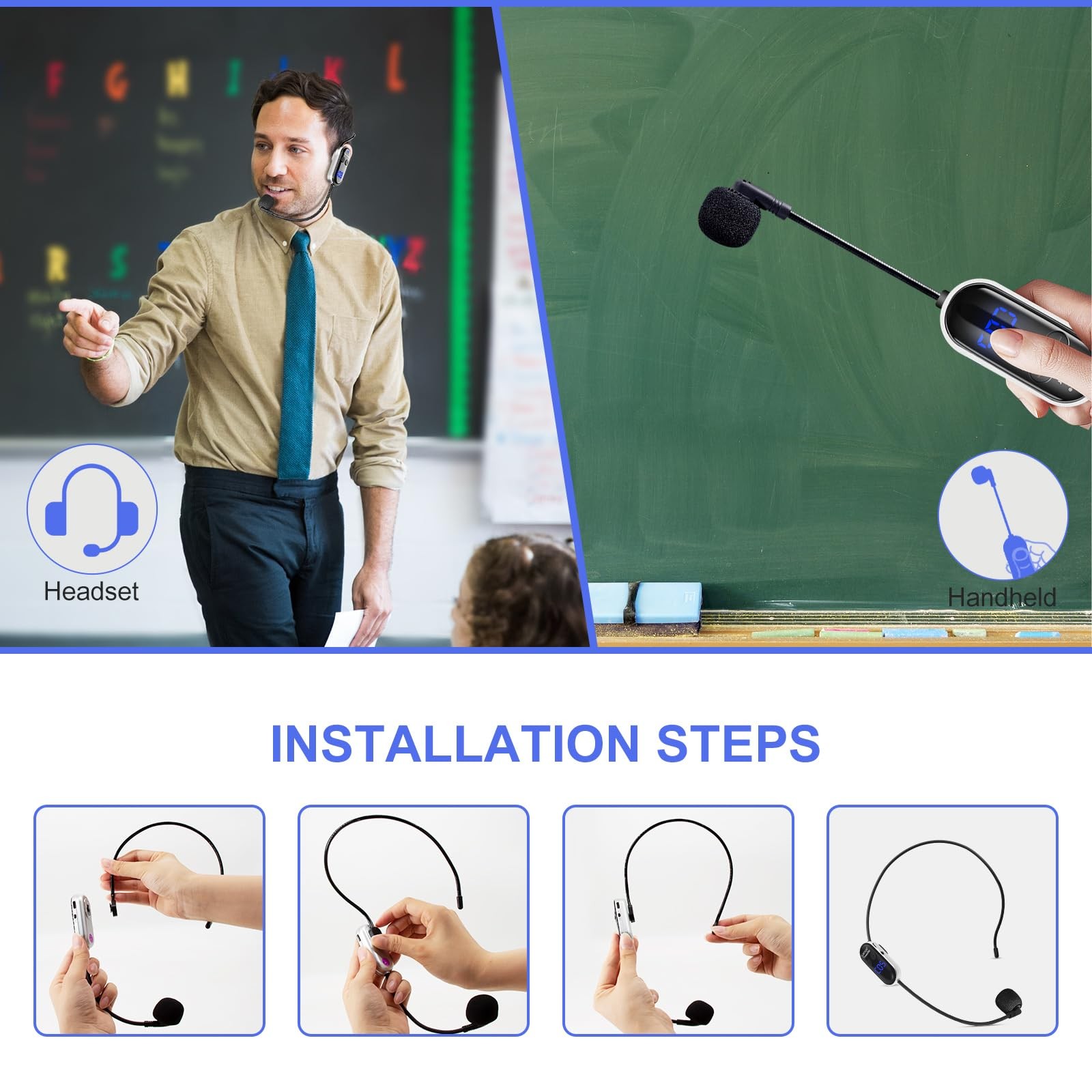 как выглядит UHF Wireless Headset Microphone System: Mic Headset - LED Digital Display, He... фото