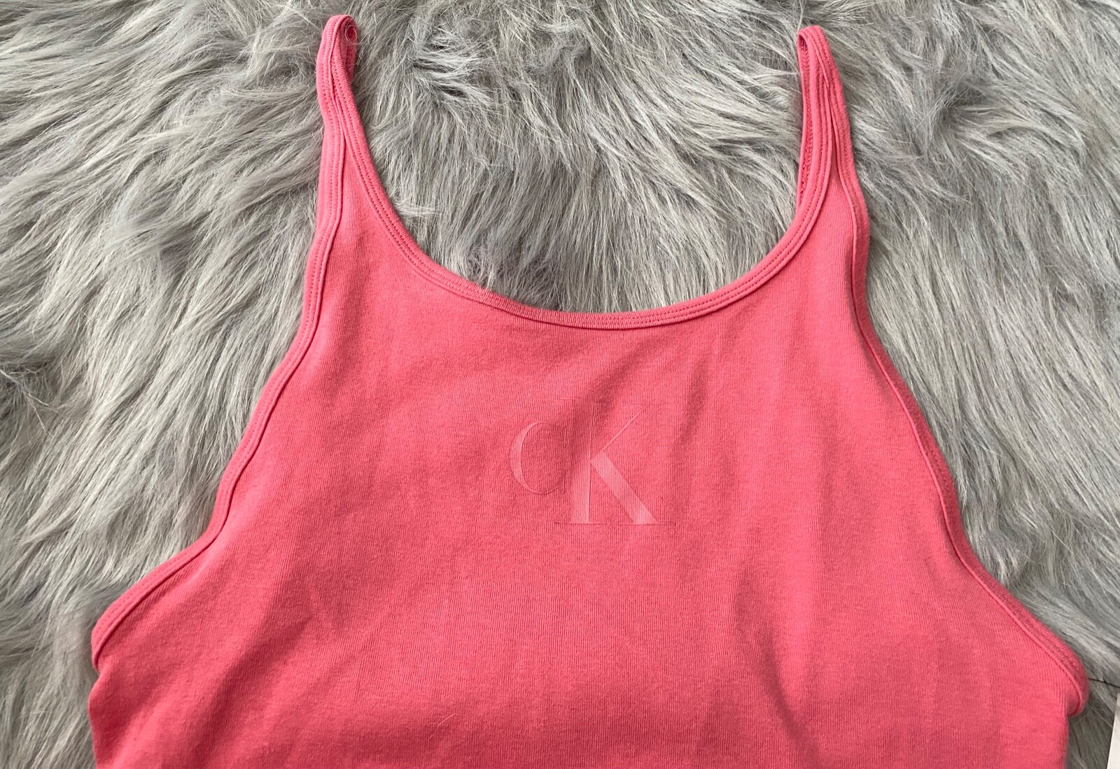 как выглядит Calvin Klein Jeans Nwt Pink Monogram Logo Tank Scoop Back Thong Bodysuit Top L фото