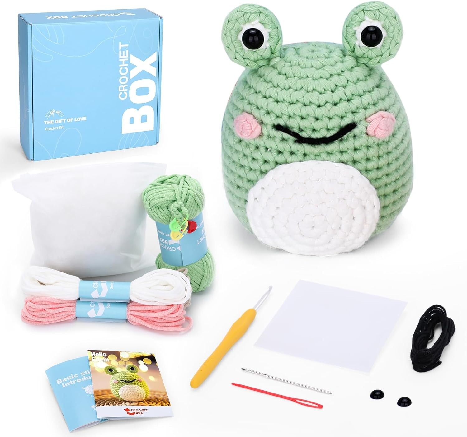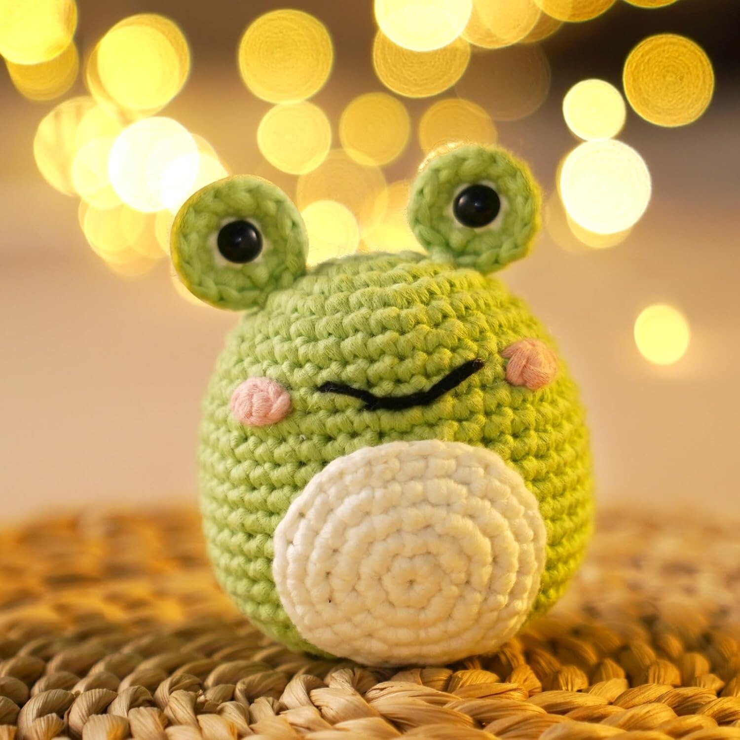 Comprehensive Frog Crochet Kit: All Materials Included for Stress Relief Fun