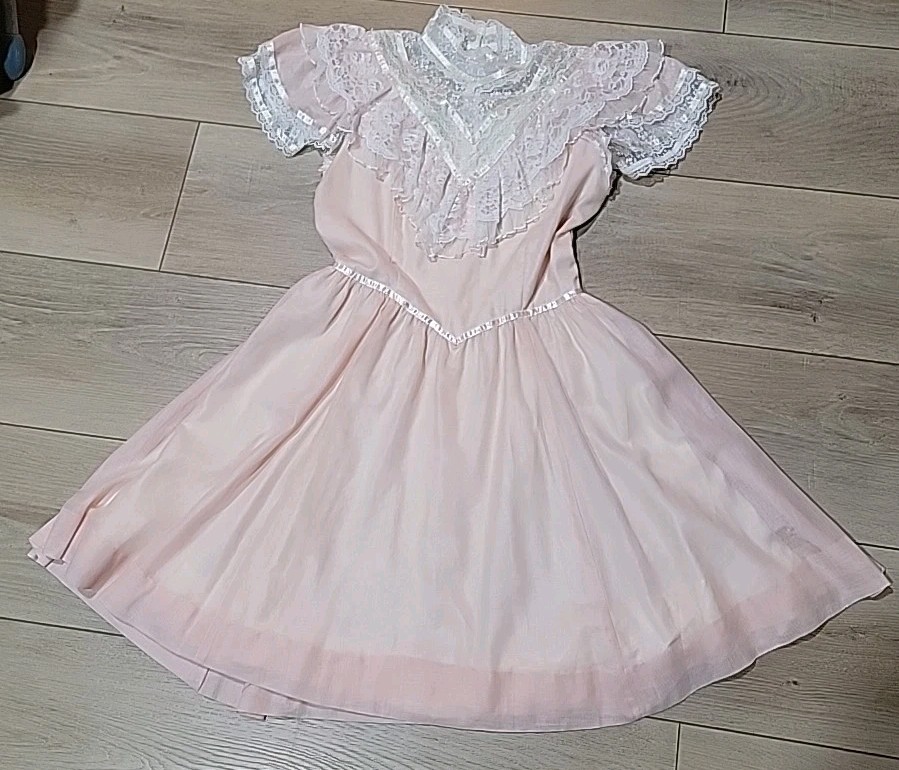 Gunne Sax Jessica McClintock Girls Dress Size 12-14 Floral Lace Trim CC